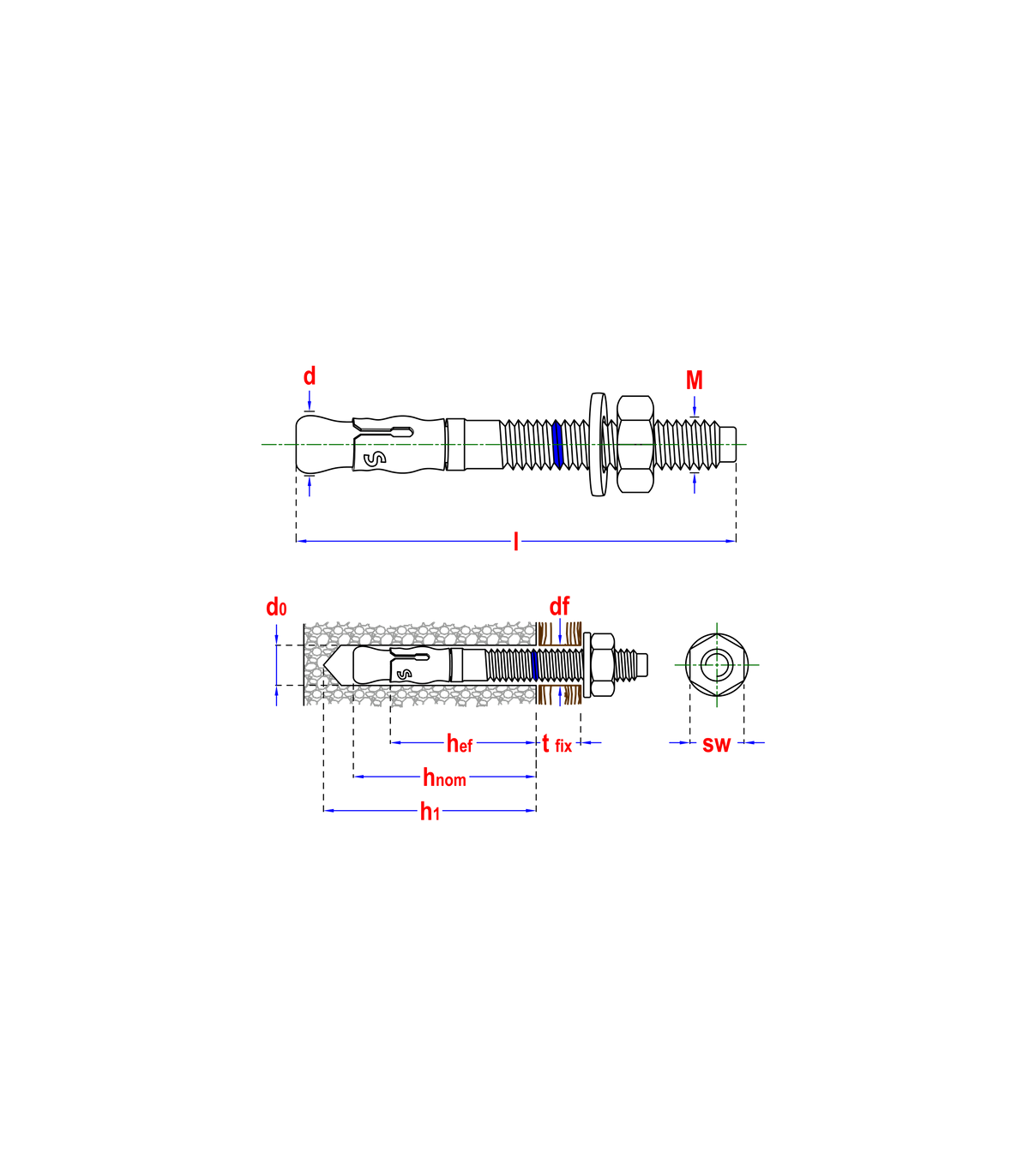 Nominalna głębokość zakotwienia: 63 mm