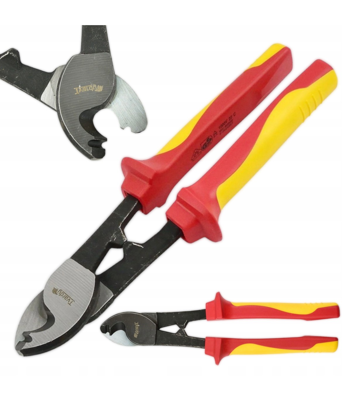 Profesjonalne nożyce dla elektryków, przeznaczone do cięcia kabli miedzianych i aluminiowych (jedno- i wielożyłowych) z izolacją z gumy lub tworzywa. Dzięki solidnej konstrukcji i skutecznej izolacji do 1000V doskonale sprawdzą się przy pracach instalacyjnych w warunkach niskiego napięcia.