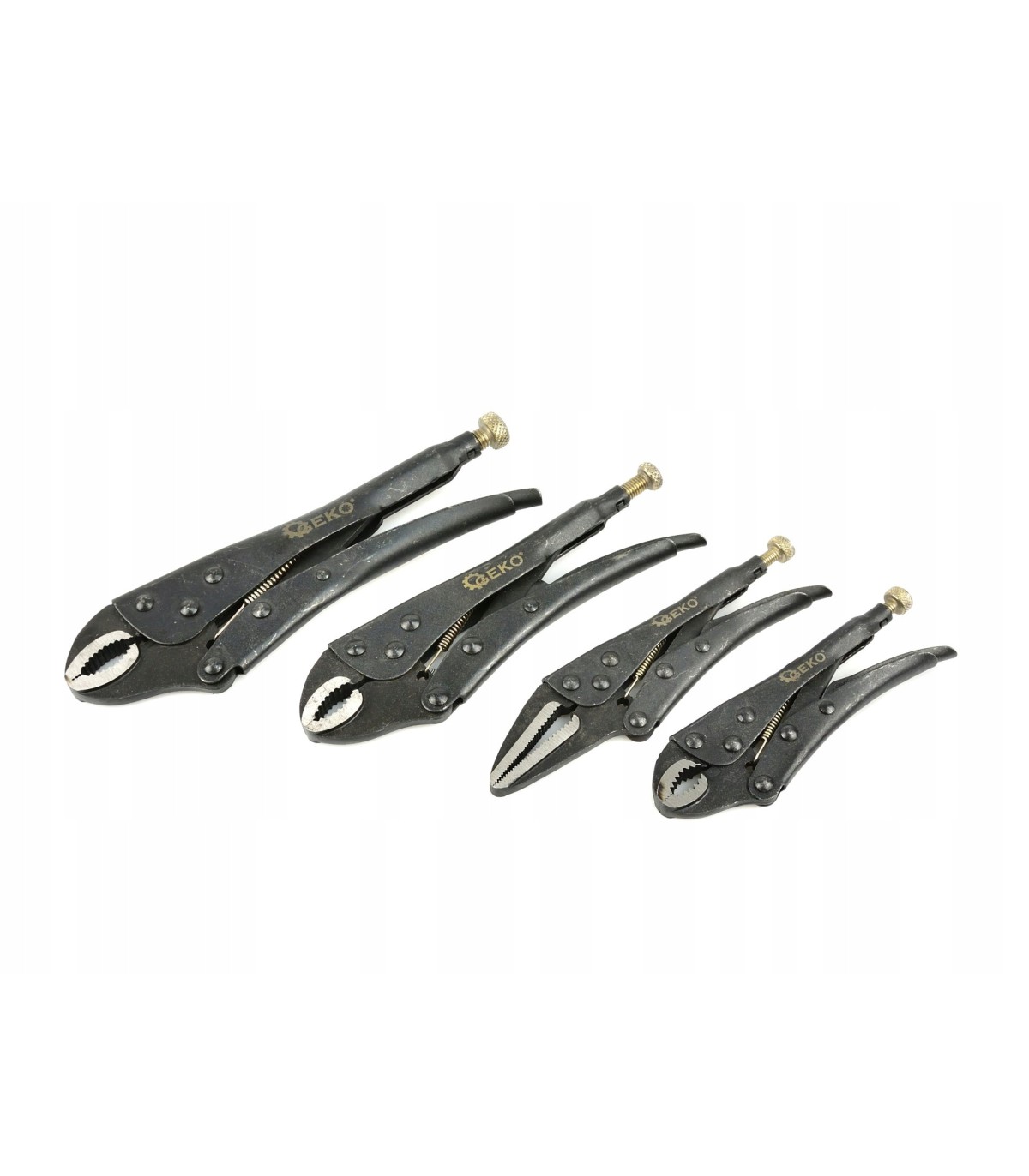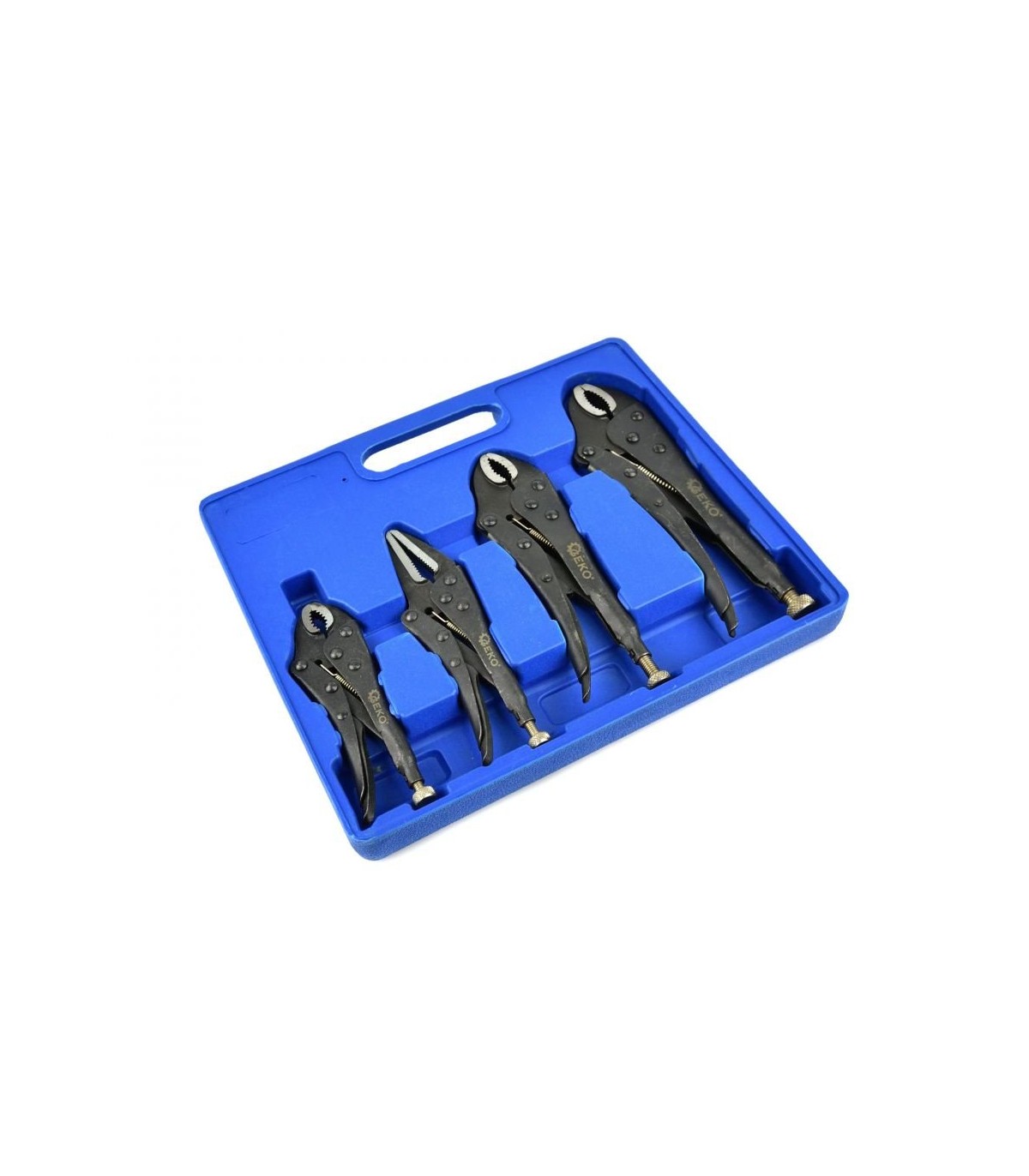 Zestaw udarowych szczypiec zaciskowych morse'a. W skład zestawu wchodzą szczypce w 4 rozmiarach, wykonane zostały przy użyciu wysokiej jakości materiałów. Szczęki ze stali węglowej C45 poddanej odpowiedniej obróbce cieplnej, która charakteryzuje się dużą wytrzymałością oraz znaczną ciągliwością. Rękojeści wykonane ze stali Q235.