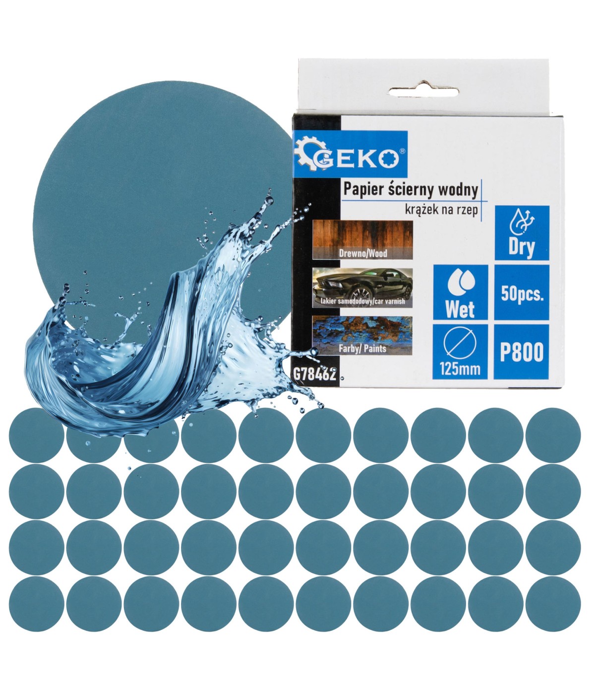 Wodoodporny papier ścierny - krążek na rzep 125 mm o gradacji P800 przeznaczone do szlifowania ręcznego i maszynowego.