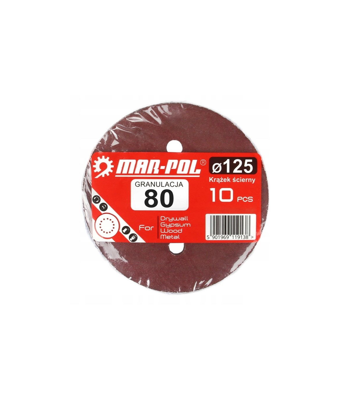 Krążek (papier) ścierny P80 z otworami na dysk z rzepem 125mm.