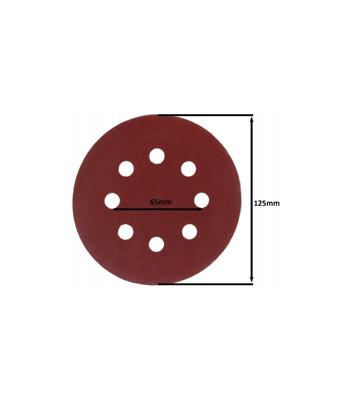 Krążek (papier) ścierny P150 z otworami na dysk z rzepem 125mm.