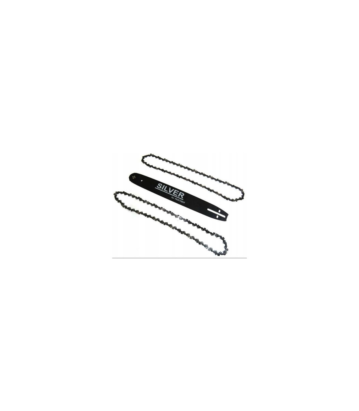 Prowadnica została wykonana z wytrzymałego materiału odpornego na ścieranie oraz temperatury występujące podczas pracy. Zestaw pasuje do pił spalinowych pracujących z łańcuchami o skoku 3/8".