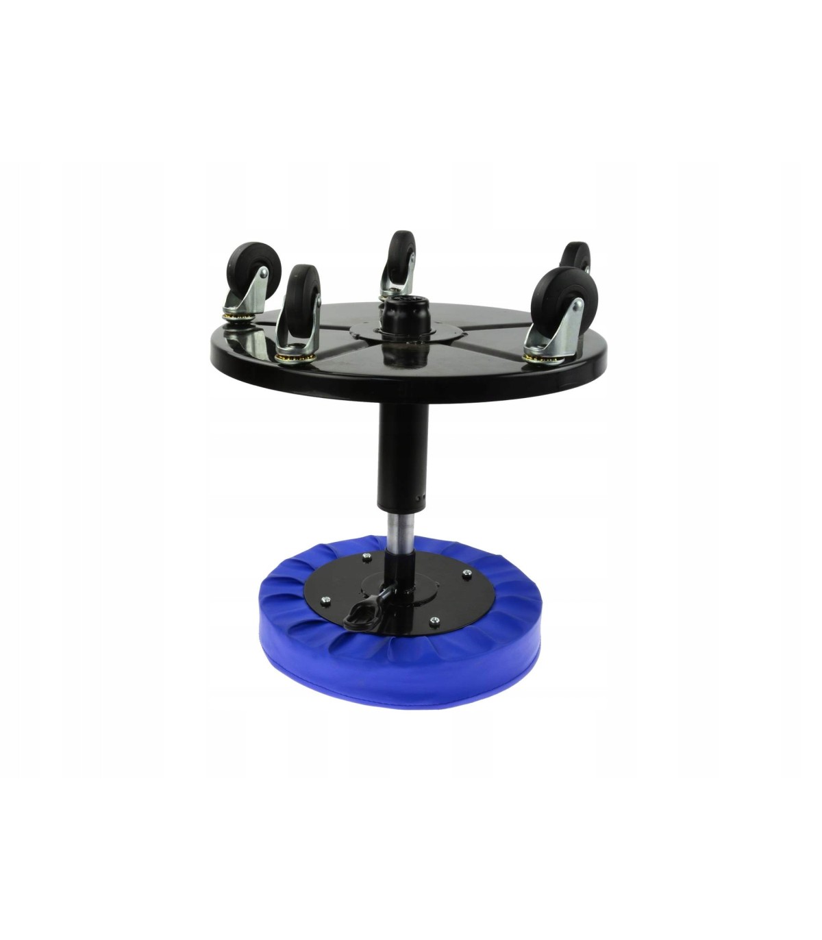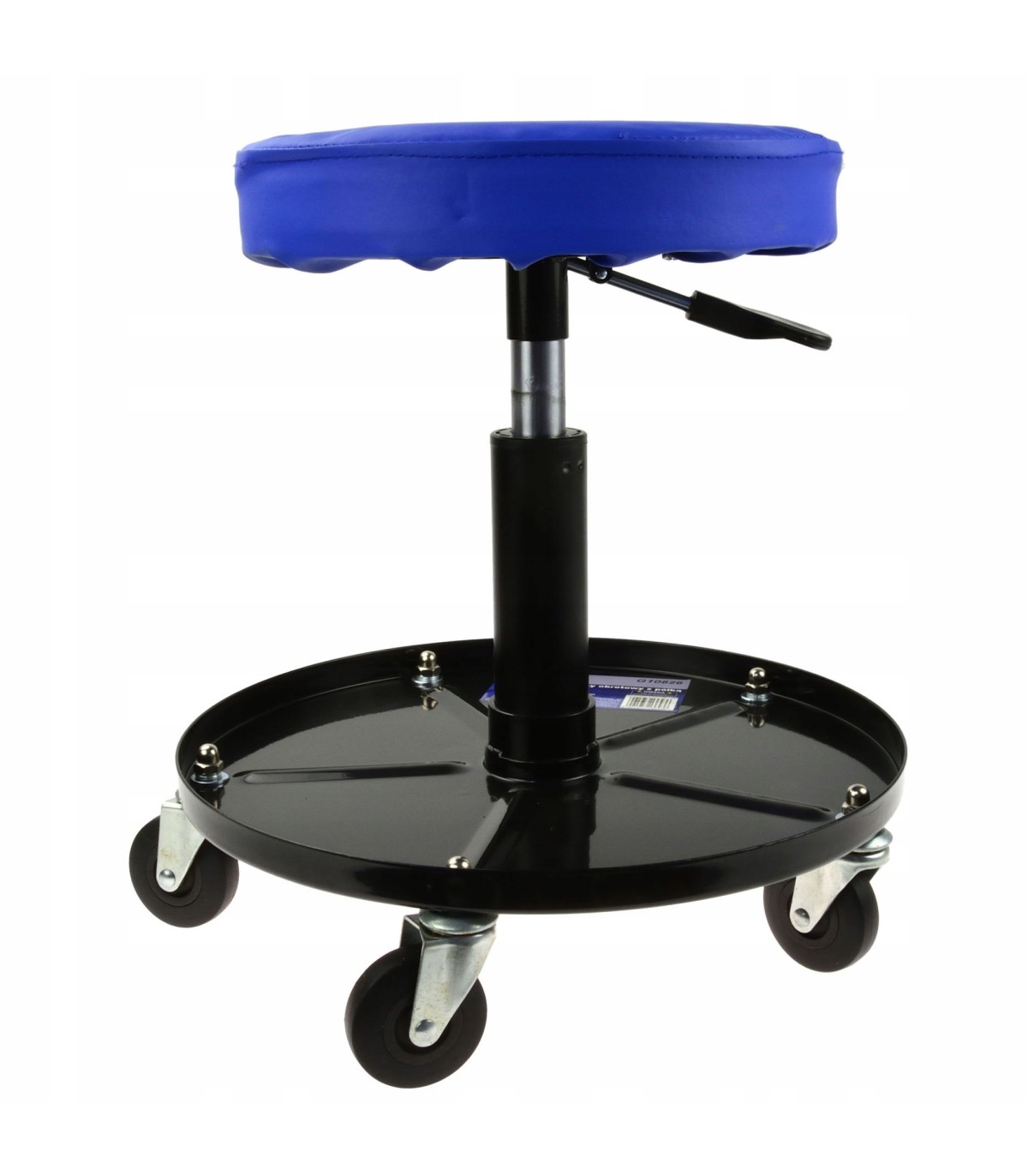 Wysokiej jakości obrotowy stołek warsztatowy z regulacją wysokości oraz półką na narzędzia. Siedzisko renomowanej marki GEKO posiada 4 w pełni skrętne kółka, całkowicie wyściełana siedzisko oraz półkę umożliwiającą łatwy dostęp do narzędzi.