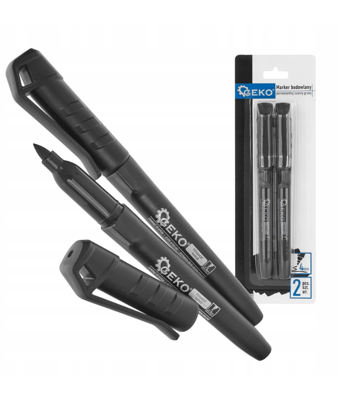 Dzięki grubej linii pisania 1,0–1,5 mm marker umożliwia wykonywanie wyraźnych oznaczeń, widocznych nawet na chropowatych i wymagających powierzchniach.