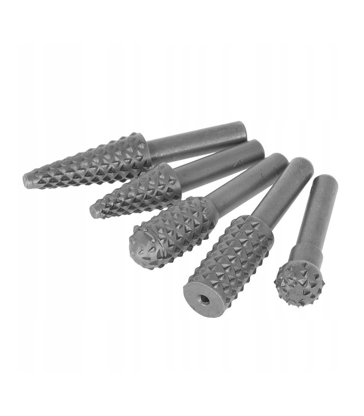 Zestaw pięciu tarników trzpieniowych przeznaczonych do podstawowej obróbki drewna, plastików oraz innych podobnych miękkich materiałów.
