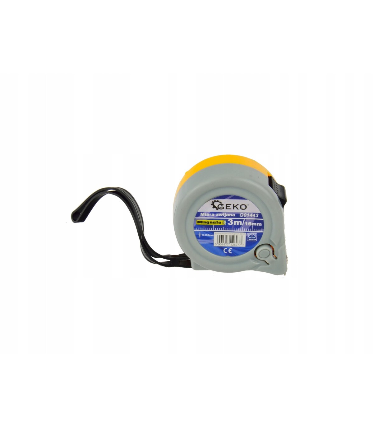 Profesjonalna miara, taśma zwijana stalowa z blokadą i zaczepem z magnesem. Taśma o długości 3 m i szerokości 16 mm.