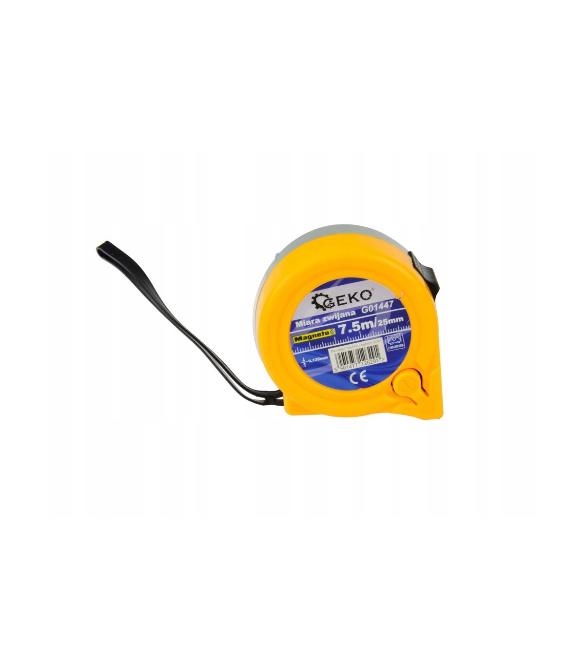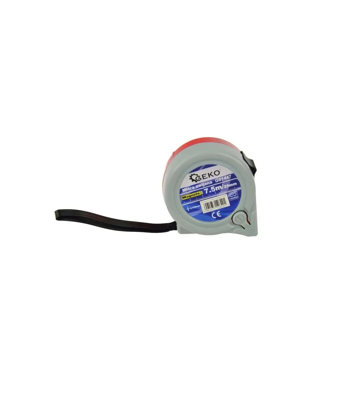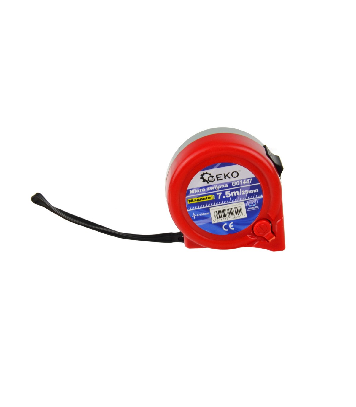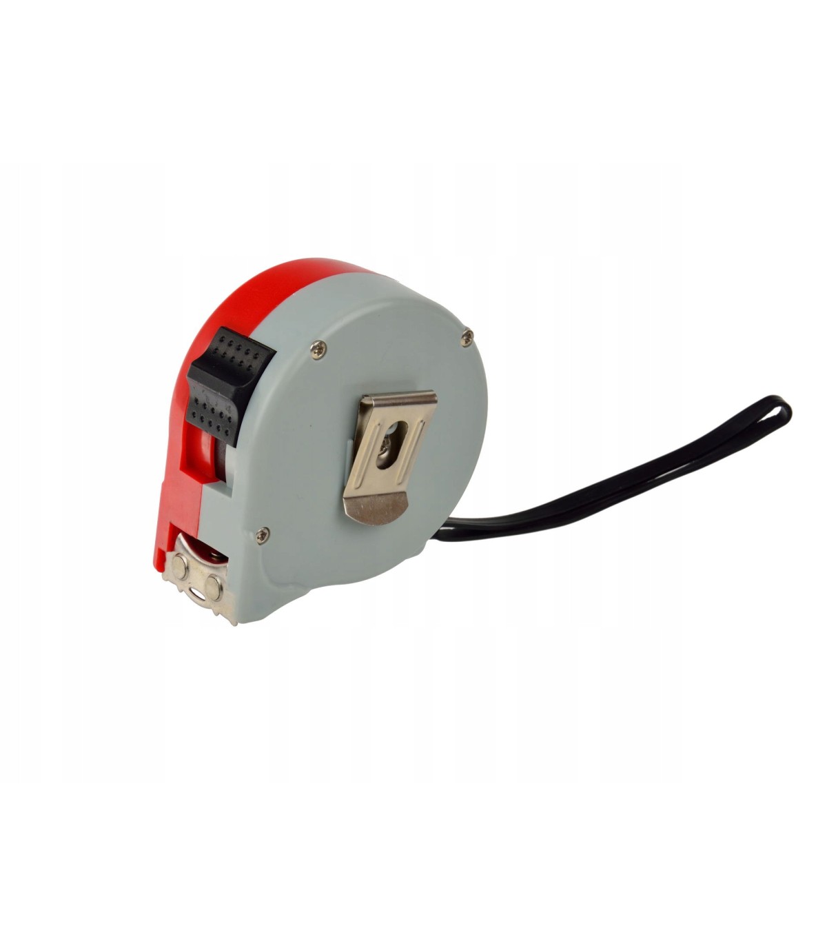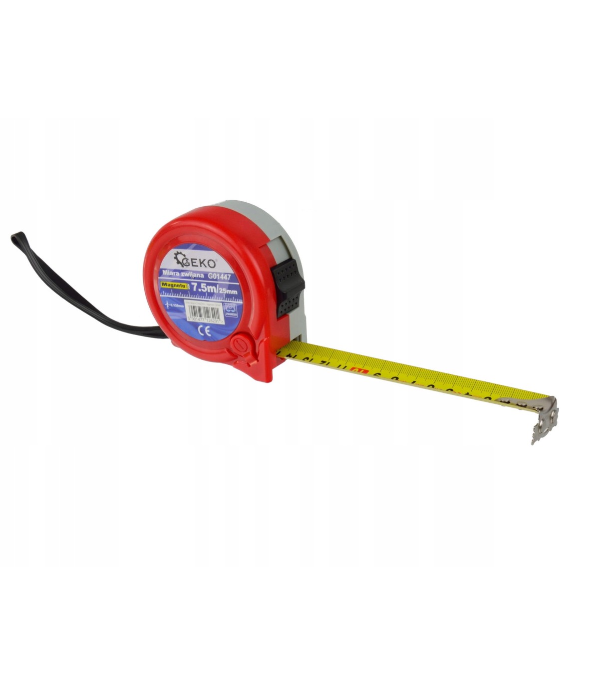 Taśmę ze stali węglowej zakończono solidnym zaczepem mierniczym z magnesem - umożliwia pomiar konstrukcji stalowych bez pomocy drugiej osoby. Obudowa miarki zrobiona z tworzywa sztucznego. Przycisk blokady obsługiwany kciukiem.