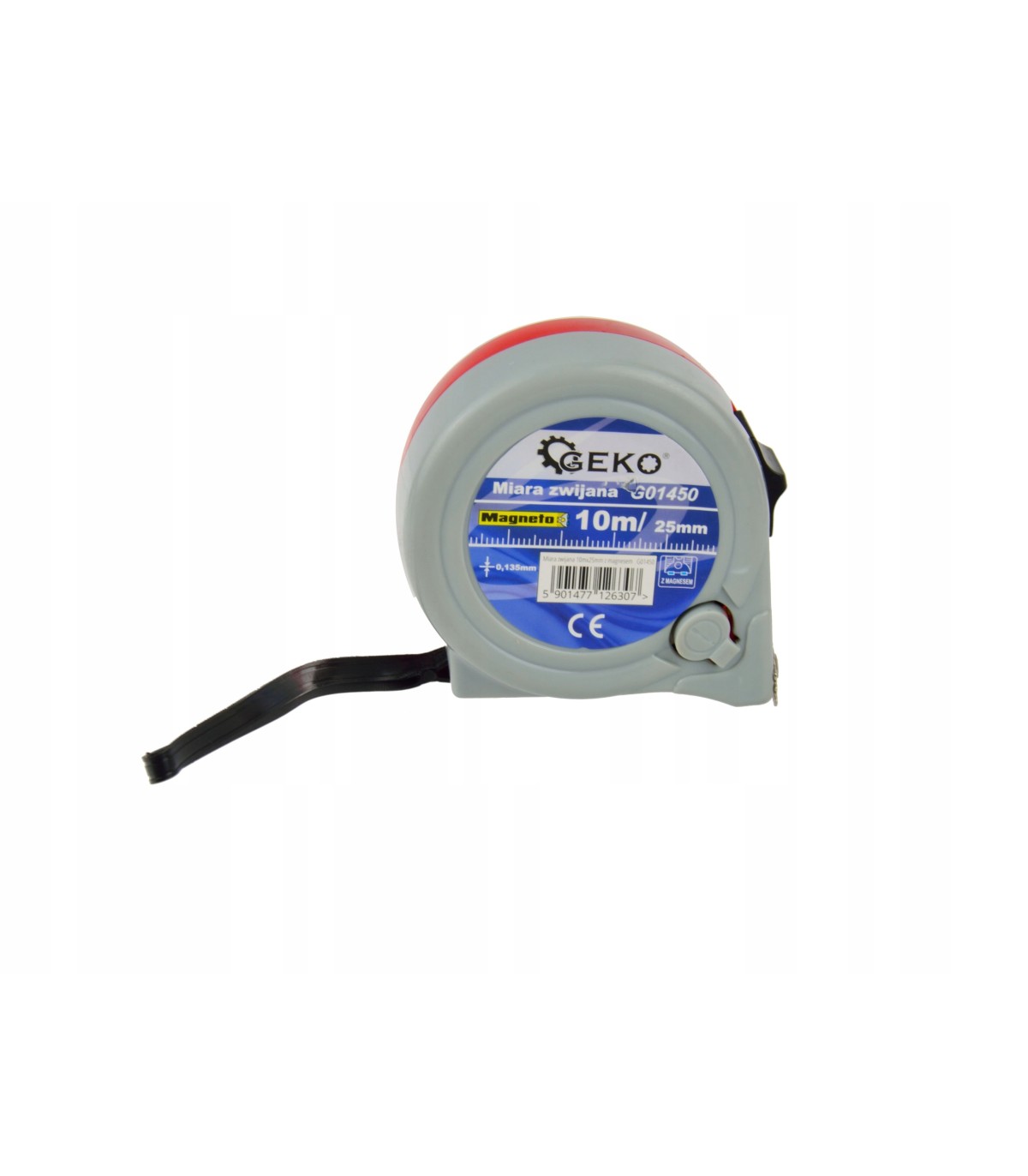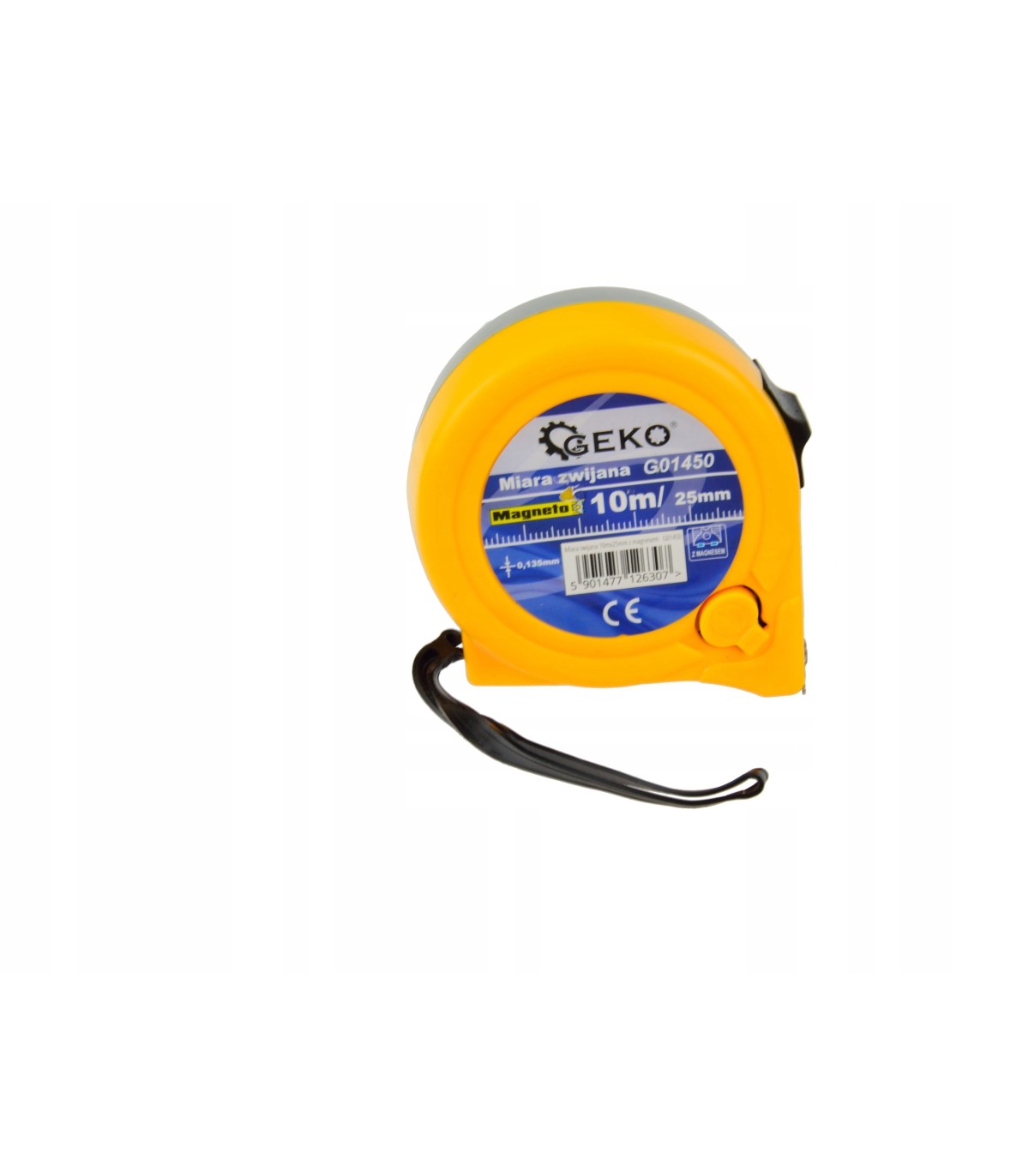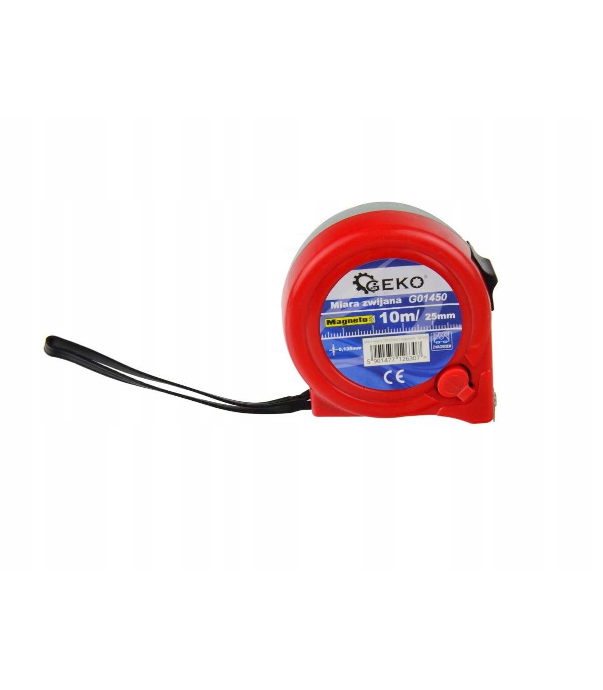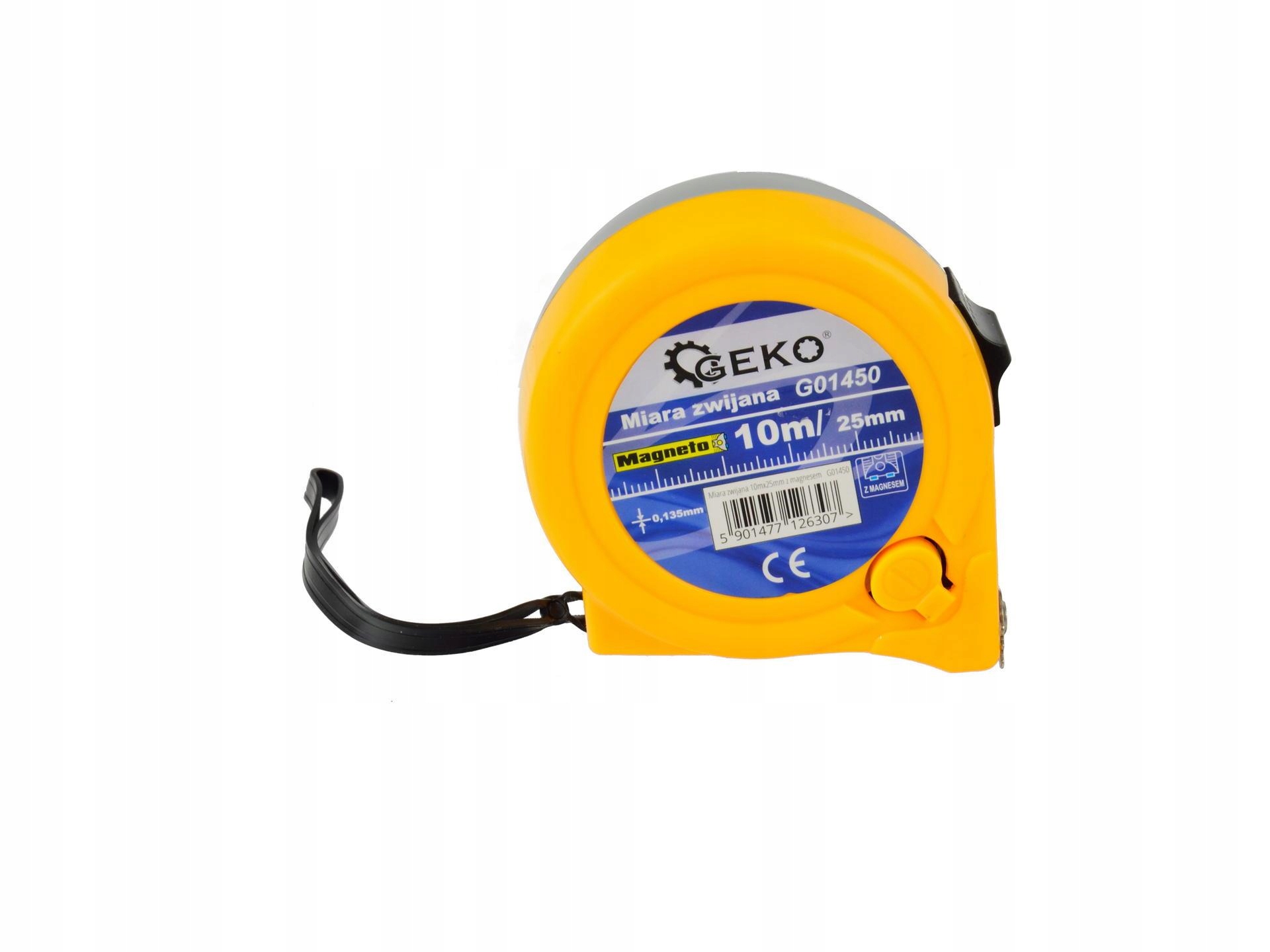 Profesjonalna miara, taśma zwijana stalowa z blokadą i zaczepem z magnesem. Taśma o długości 10 m i szerokości 25 mm.
