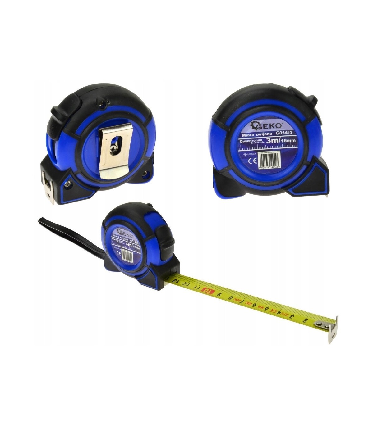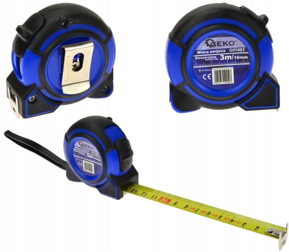 MIARA ZWIJANA GEKO DOUBLE-SIDE 3m to stalowy przyrząd mierniczy, który został wzbogacony o kilka praktycznych rozwiązań m.in. miara dwustronna umożliwiająca odczyty pomiarów z dwóch stron taśmy. Dodatkowe zalety miary to także odporna na mechaniczne uszkodzenia antypoślizgowa obudowa ABS, solidna zanitowana końcówka umożliwia zaczepienie taśmy w wybranym punkcie a co za tym idzie samodzielne wykonywanie prac pomiarowych.