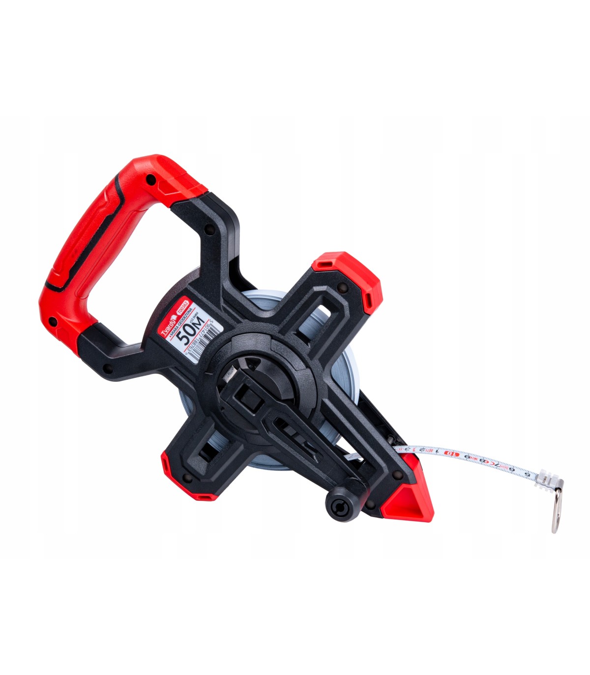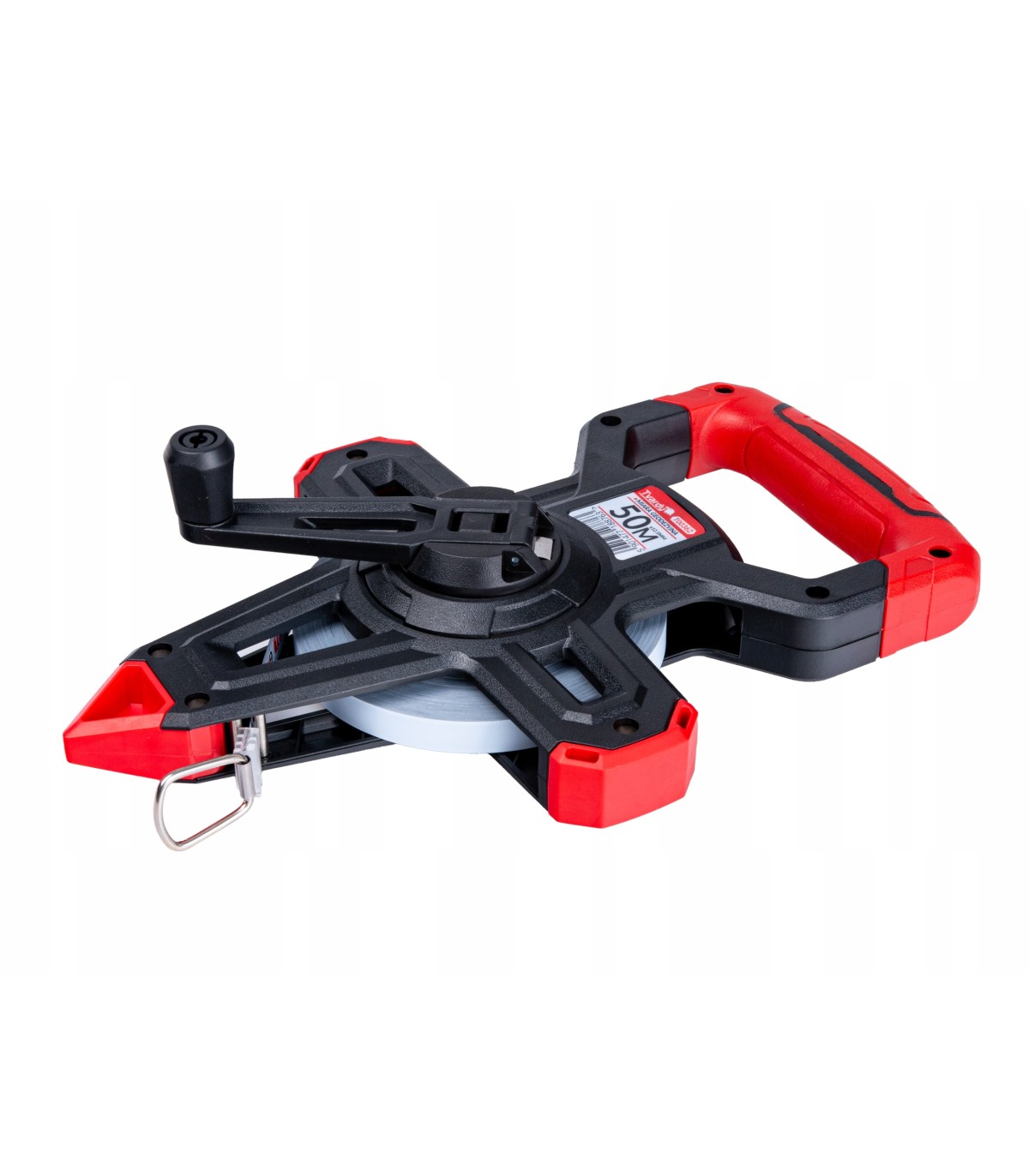Dzięki przemyślanej konstrukcji oraz wygodnym elementom, takim jak gumowy uchwyt czy korbka do zwijania, miara ułatwia dokładne pomiary nawet w wymagających warunkach.