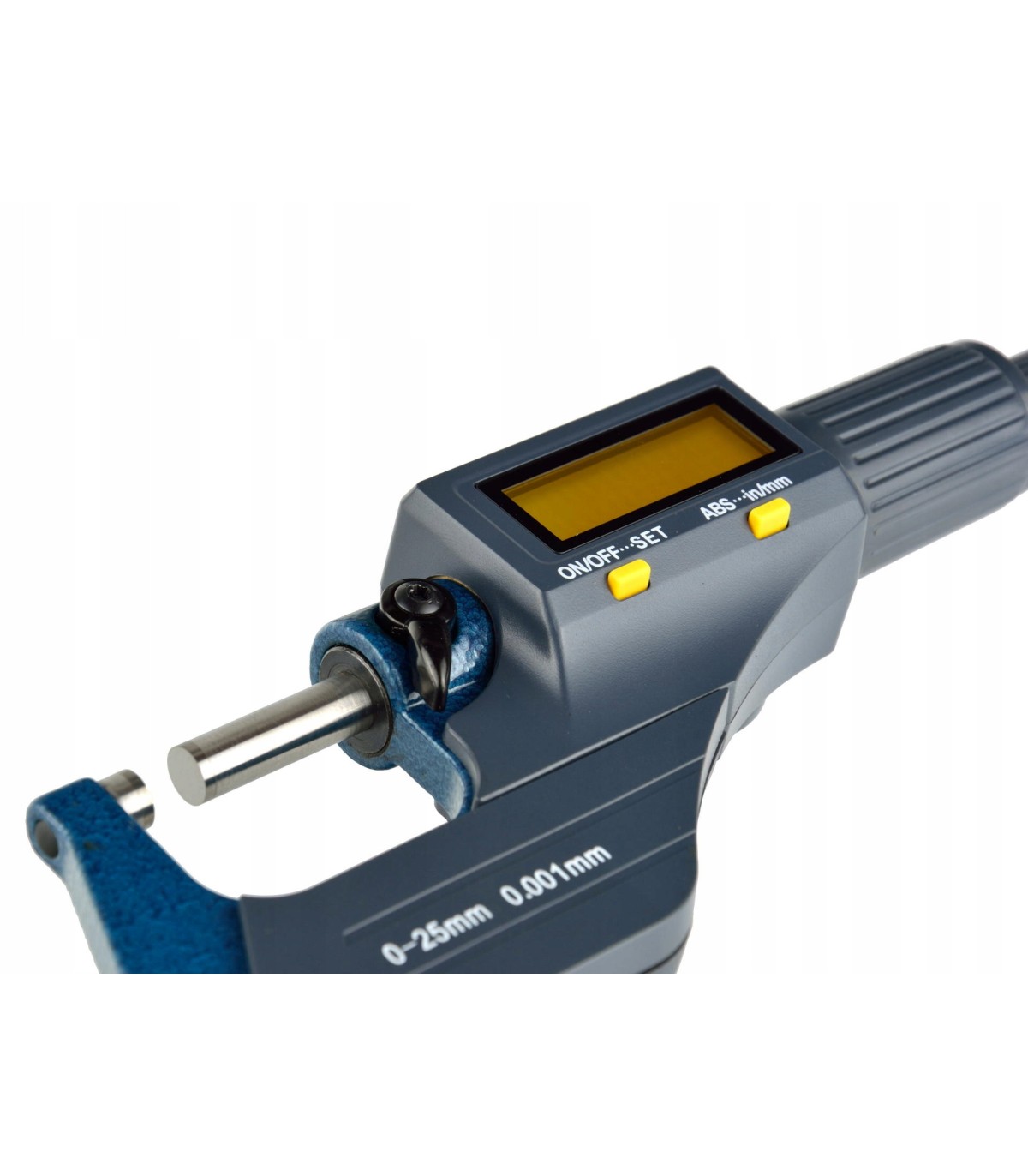 MIKROMETR ELEKTRONICZNY LCD 0-25 MM 0,001M PRECYZJA POMIARU ZACISK DŹWIGOWY