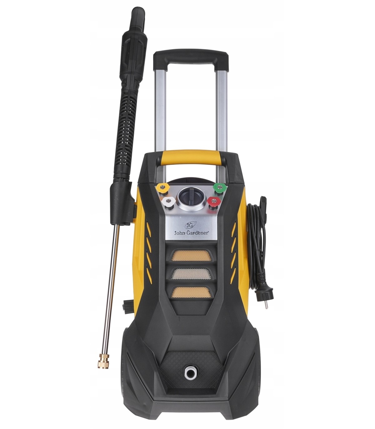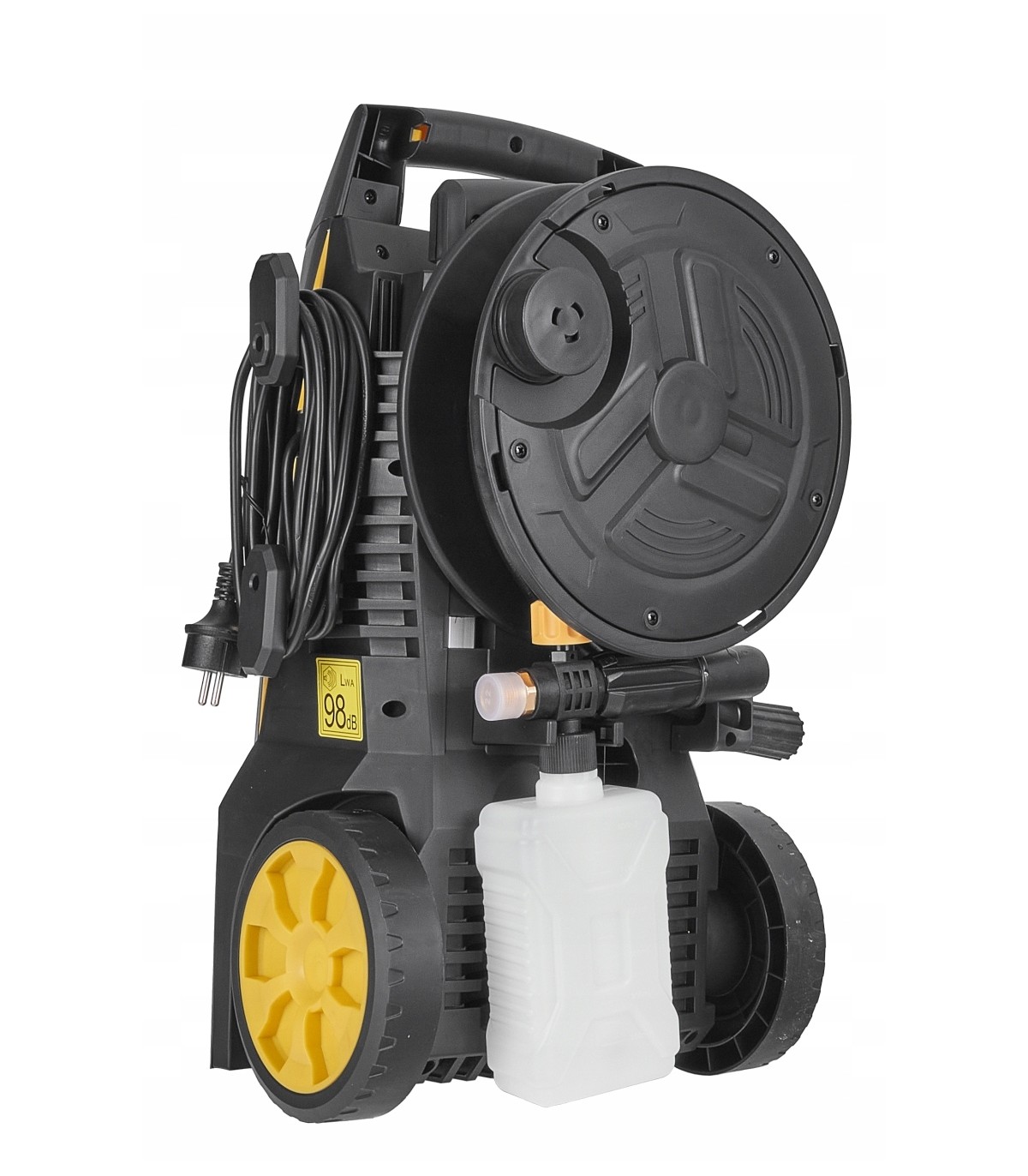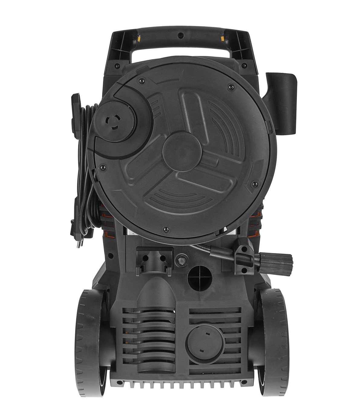 ✅Przechowywanie – Myjka posiada specjalne uchwyty, na pistolet, lancę, zwijak na wąż ciśnieniowy oraz uchwyt NA przewód zasilający i pianownicę. Dodatkowo w panelu sterujący znajdują się specjalne otwory przeznaczone do przechowywania dysz rozpylających.