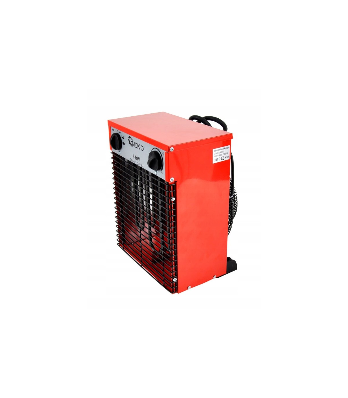 Nagrzewnica elektryczna o mocy 5000W 5 kW to bardzo efektywne urządzanie zapewniające czyste i bezpieczne ogrzewanie. Służy do ogrzewania pomieszczeń mieszkalnych i użytkowych, takich jak piwnice, garaże, warsztaty itp. Urządzenie jest łatwe w obsłudze, lekkie i w pełni przenośne, co sprawia że świetnie nadają się do okazjonalnego, bądź awaryjnego ogrzewania pomieszczeń. Po włączeniu nagrzewnicy i ustawieniu temperatury na 0 może służyć jako wentylator.