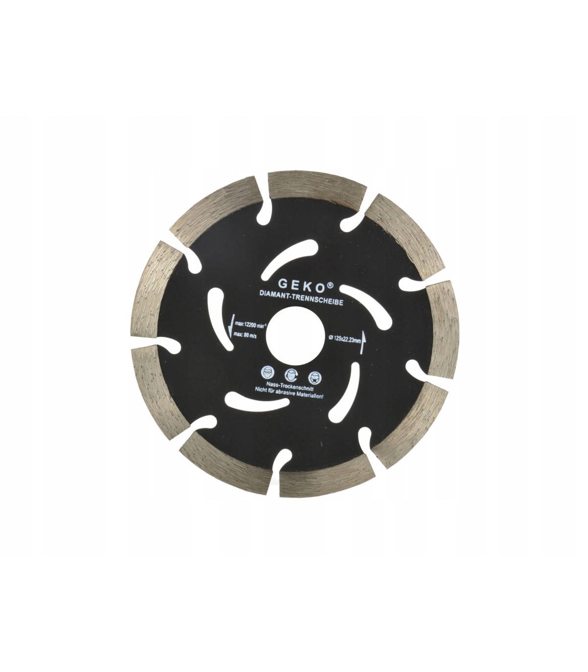 Tarcza diamentowa fi125mm do obróbki materiałów budowlanych: beton, cegła, kostka brukowa, klinkier, gazobeton, płytki ceramiczne. Profesjonalna tarcza diamentowa do cięcia spawana laserowo. Przeznaczona do pracy w szlifierkach kątowych na sucho.