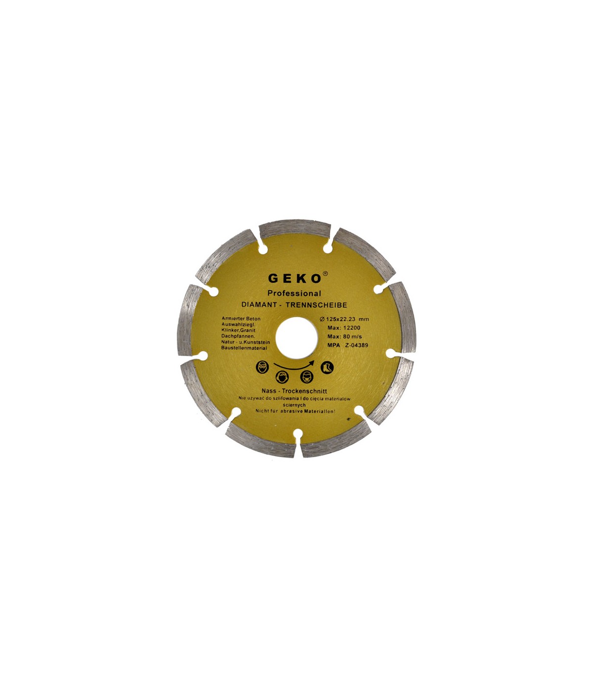 Tarcza diamentowa segmentowa ze szczelinami do cięcia na sucho materiałów budowlanych marki Geko, o wymiarach 180x22.2 mm .