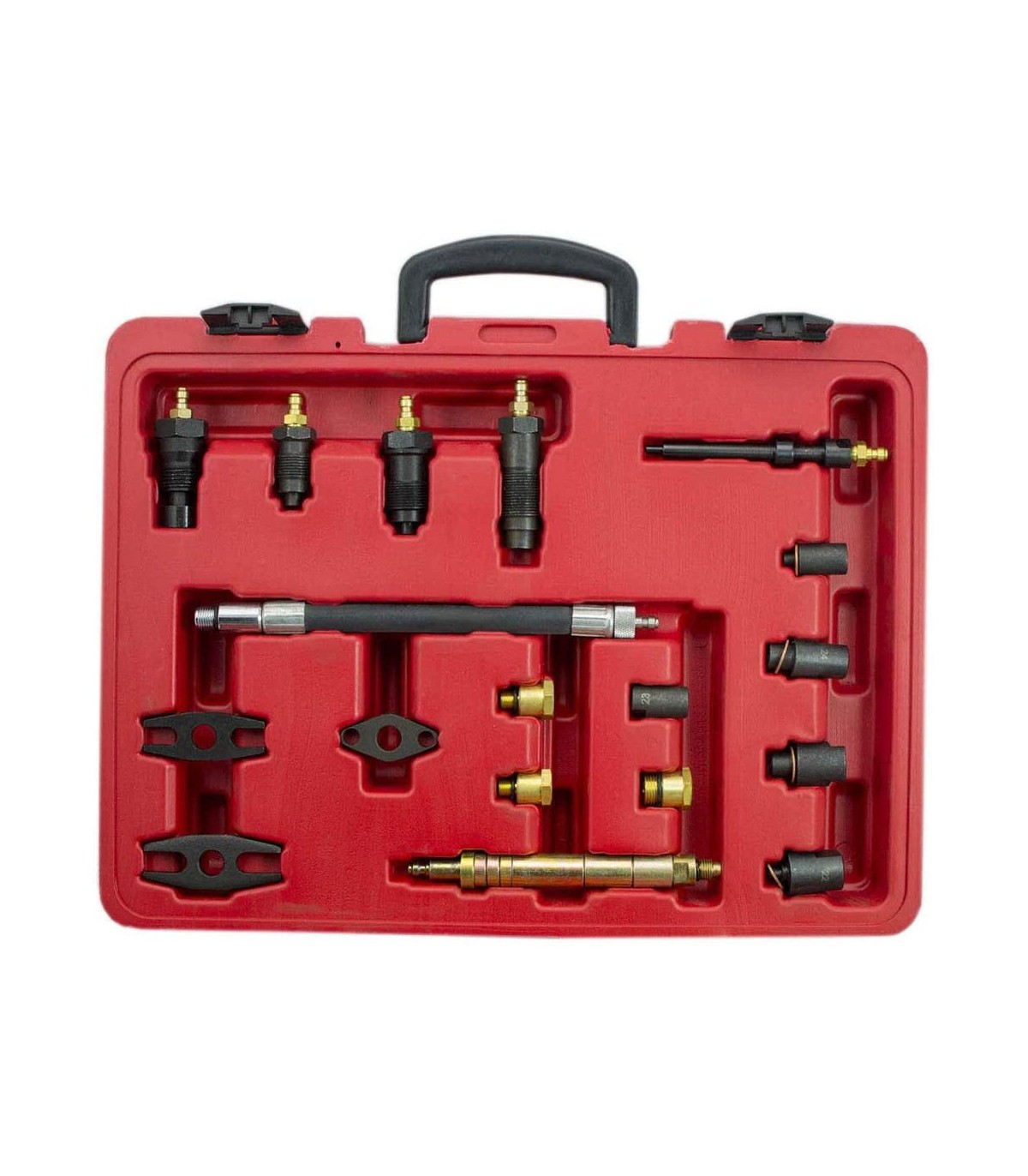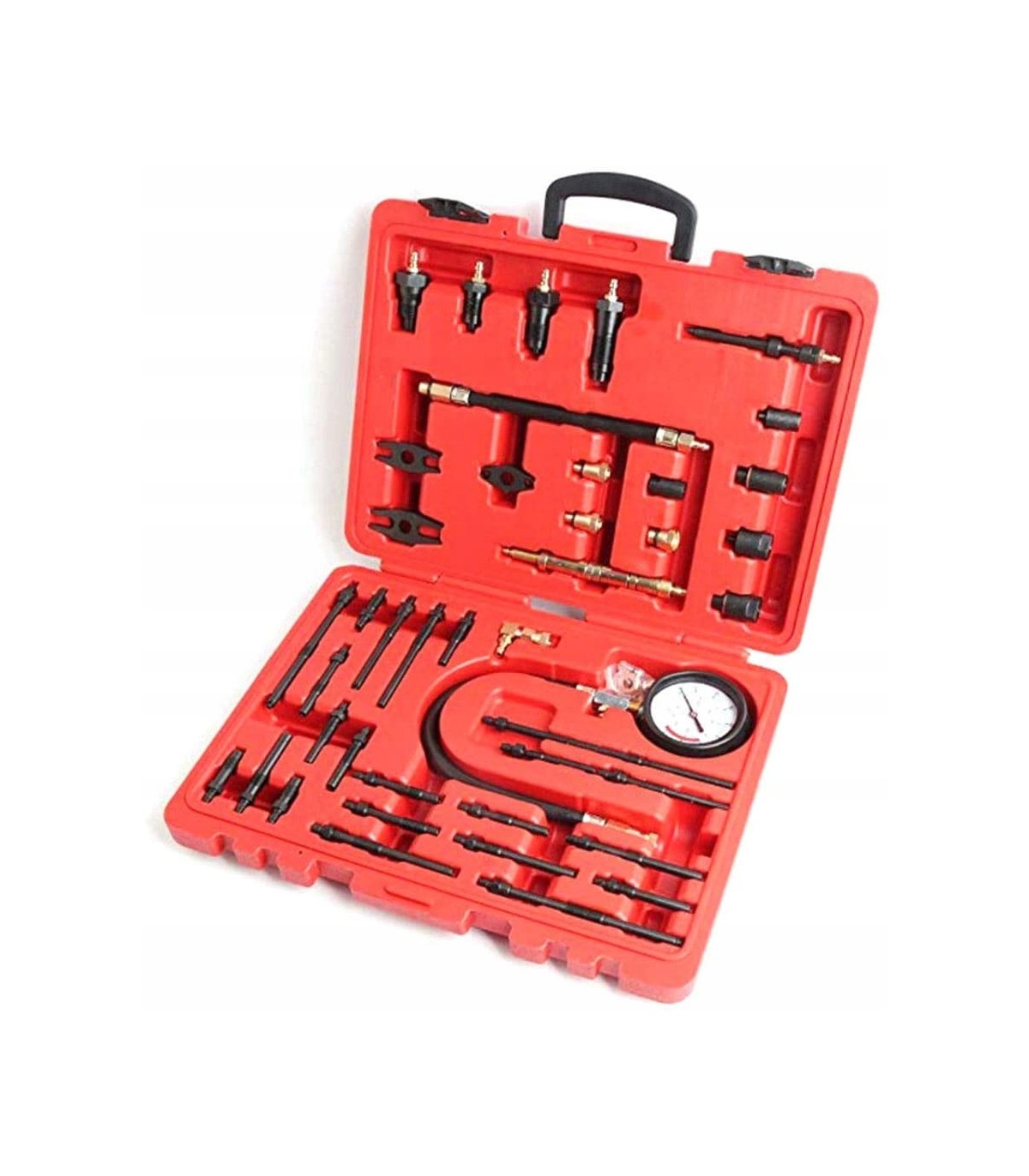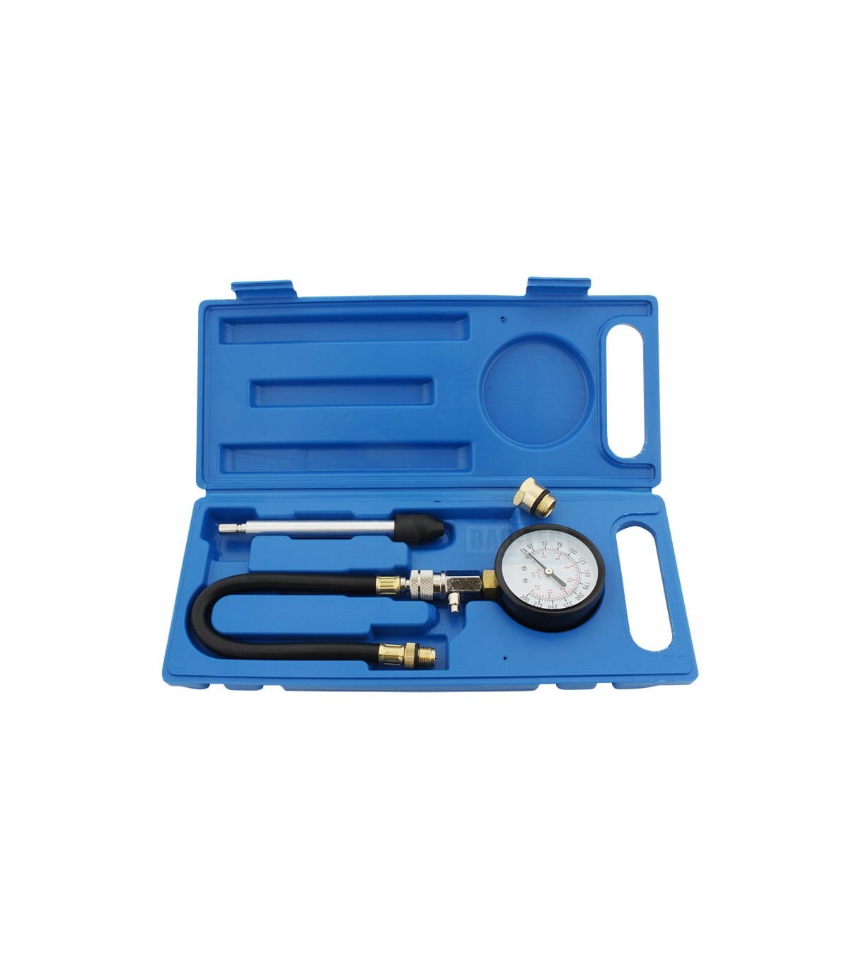 Zestaw pasuje do wszystkich gniazd świecowych. Końcówki pomiarowe można łatwo i wygodnie wymienić poprzez szybko-złączkę. Manometr analogowy pracuje w zakresie ciśnienia pomiaru 3 - 20 Bar (50-300 PSI).
