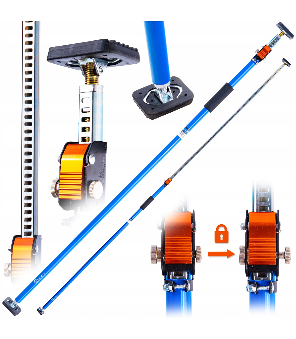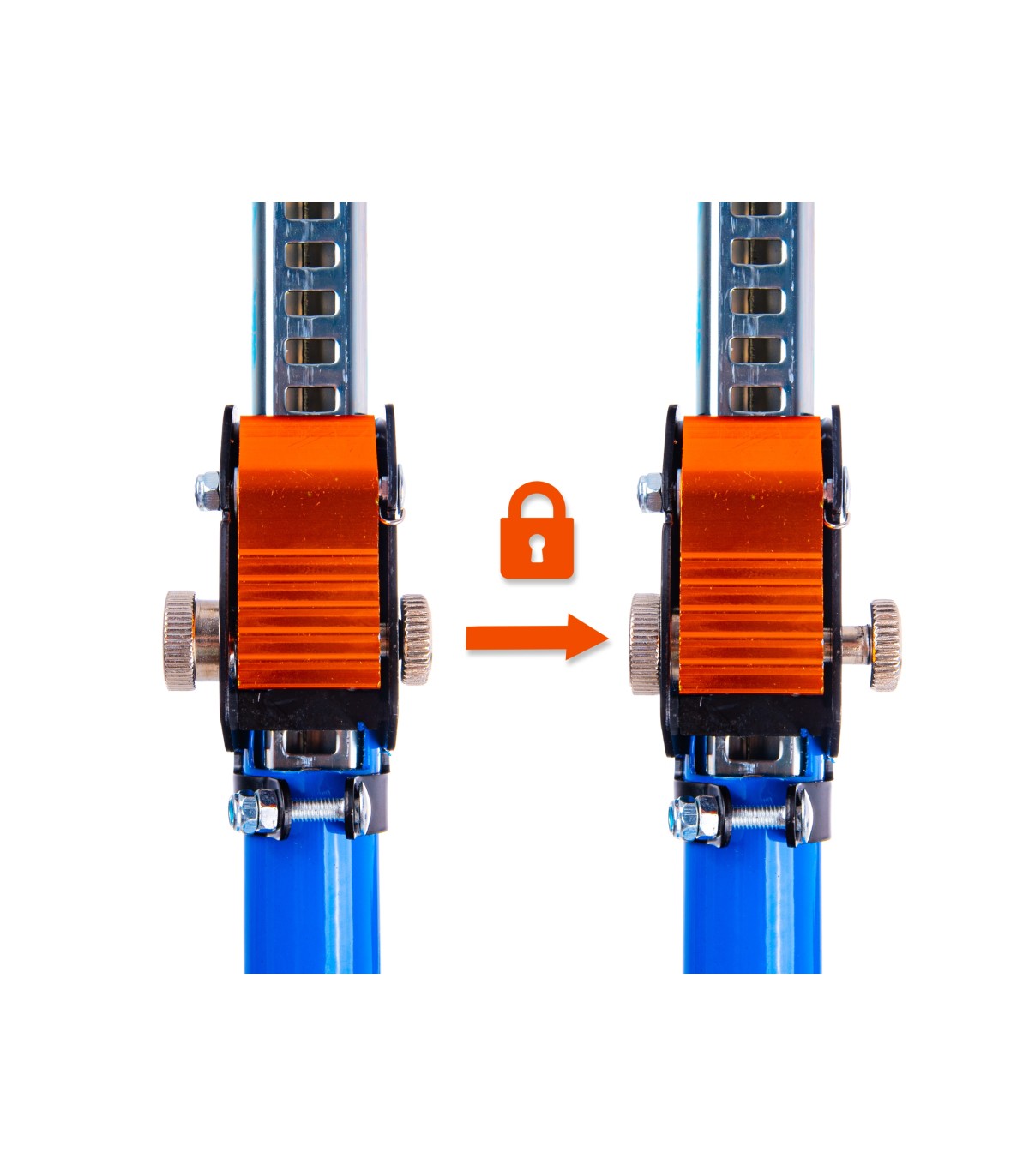 Wstępne ustawienie odbywa się błyskawicznie dzięki systemowi szybkiego mocowania – wystarczy wsunąć rurę i zablokować na żądanej długości.