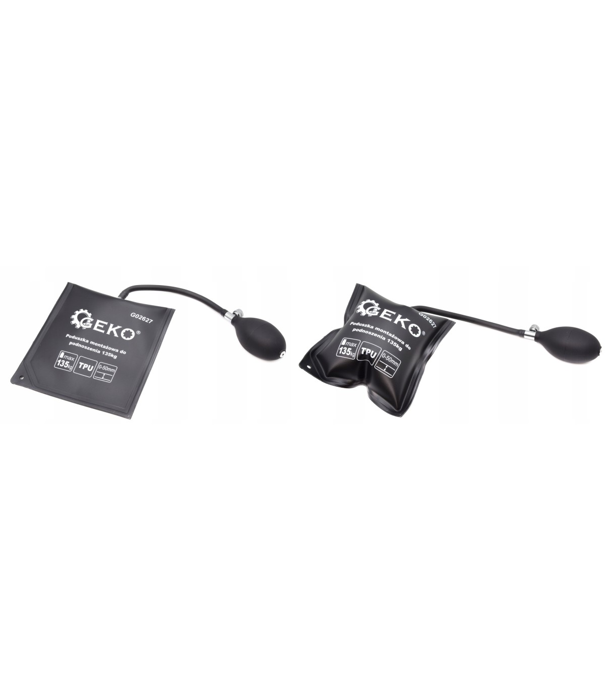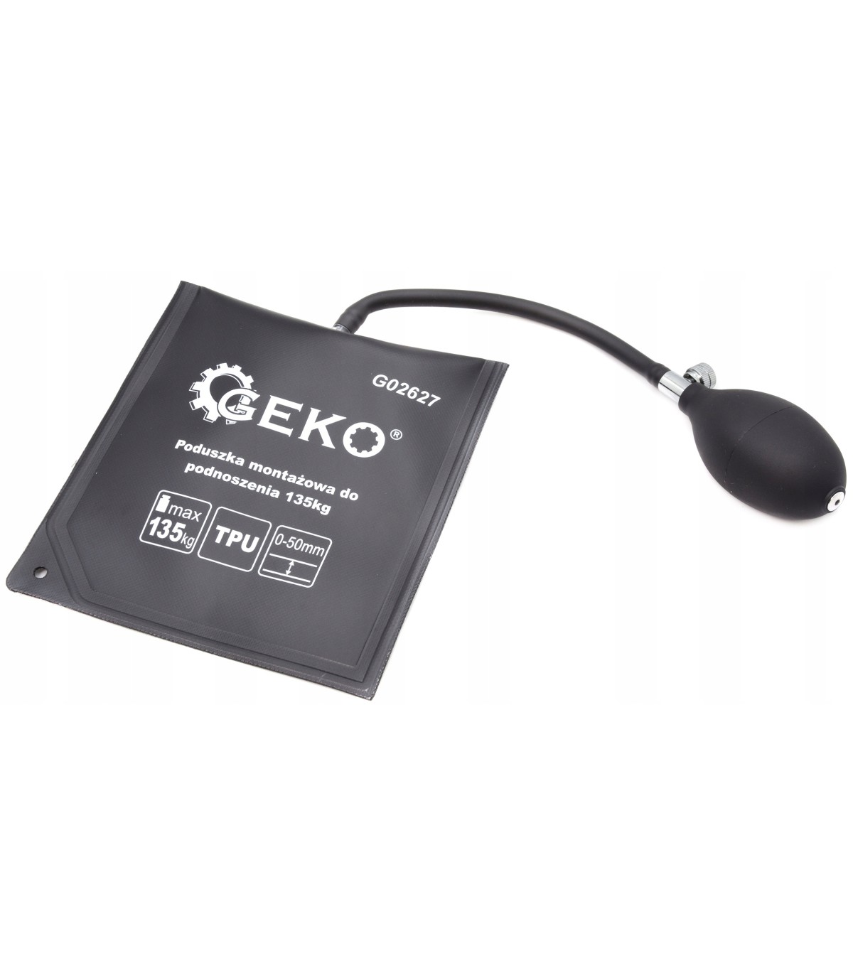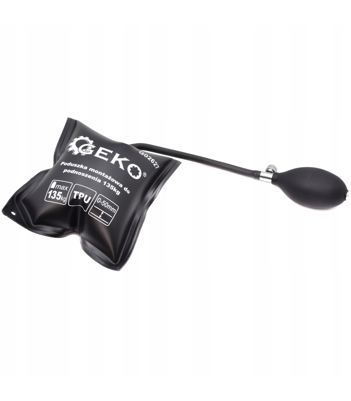 Poduszka pompowana do unoszenia elementów o wadze do 135 kg. Poduszka montażowa wykonana z wytrzymałego termoplastycznego elastomeru poliuretanowego (TPU) charakteryzującego się dużą wytrzymałością i odpornością na uszkodzenia mechaniczne.Wymiary 150 x 160 mm . Wężyk z pompką i zaworem bezpieczeństwa długości ok. 290 mm. Wysokość unoszenia ok 50 mm . Grubość nienapompowanej poduszki wynosi ok 2 mm .