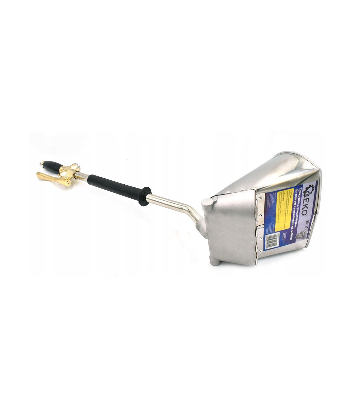 Wysokiej jakości tynkownica pneumatyczna przeznaczona do nanoszenia na sufity różnego rodzaju zapraw gipsowych, cementowych, wapiennych, wapienno-cementowych, glinianych, tynków renowacyjnych, tynków tradycyjnych itp.