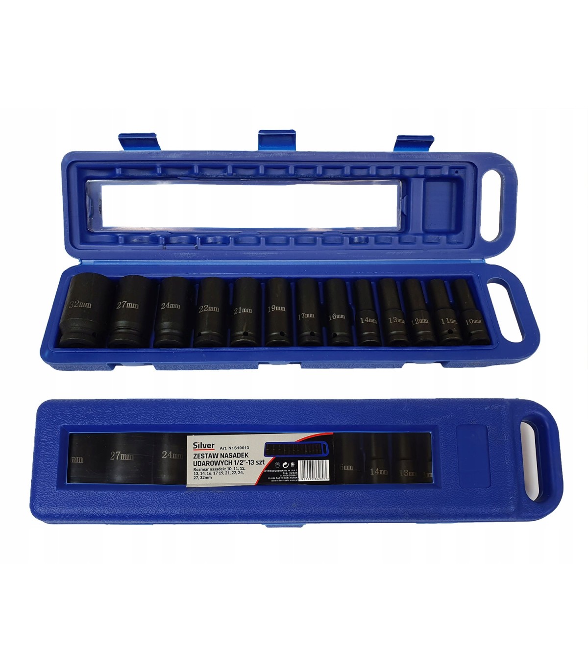 ✨Zestaw zawiera 13 różnych rozmiarów nasadek udarowych, co sprawia, że jest idealny do szerokiego zakresu zastosowań. Niezależnie od tego, czy masz do czynienia z drobnymi naprawami czy większymi projektami, znajdziesz odpowiednią nasadkę do swoich potrzeb.