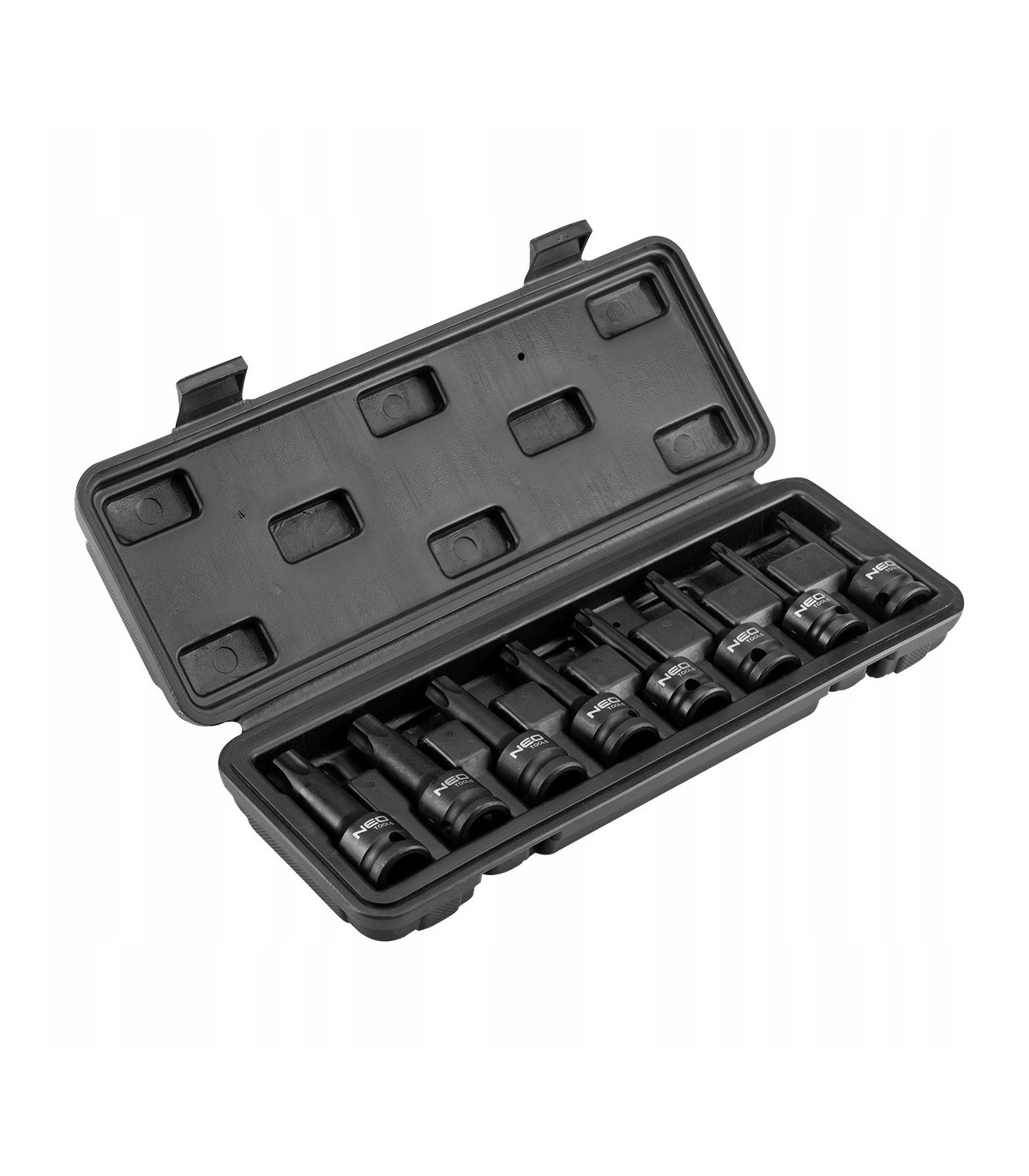 ⭐ Zestaw 8 nasadek udarowych trzpieniowych torx NEO - idealny wybór dla profesjonalistów i majsterkowiczów, którzy cenią sobie skuteczność i wysoką jakość wykonania. Te nasadki zostały stworzone z myślą o narzędziach z mechanizmem udarowym, oferując niezawodność i wszechstronność w różnych zastosowaniach.