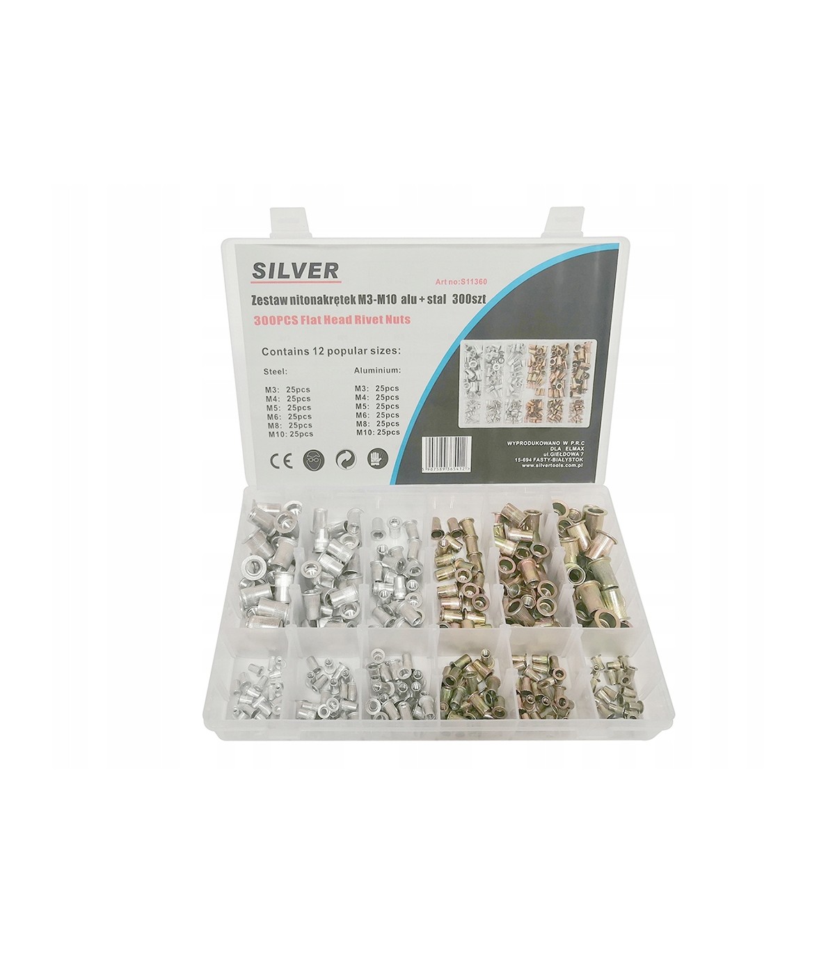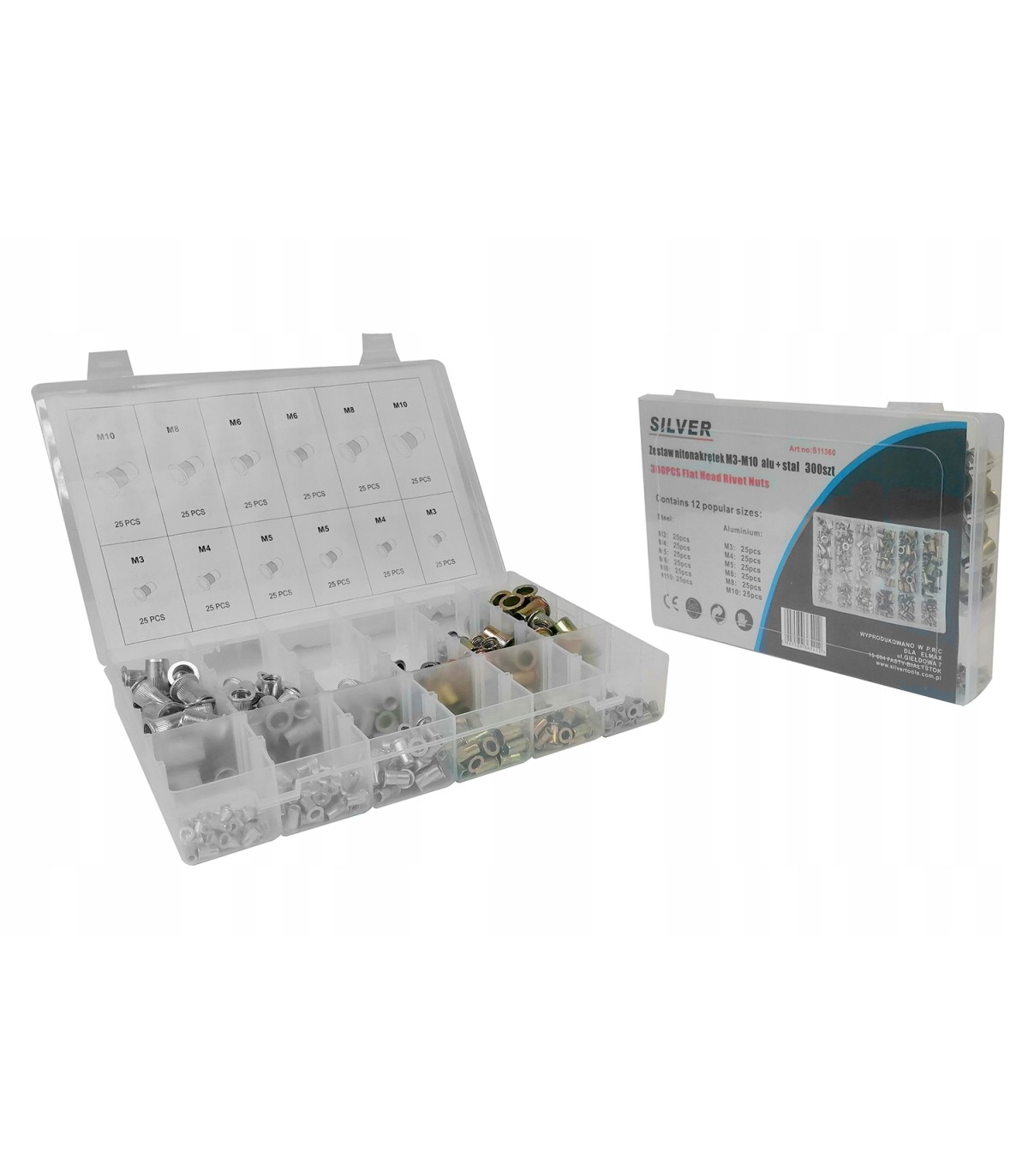 ⭐Zestaw nitonakrętek to niezbędny element w każdym warsztacie, przy montażu i konserwacji różnych konstrukcji. Zestaw składa się z 300 sztuk nitonakrętek wykonanych z aluminium oraz stali, co zapewnia wszechstronne zastosowanie i wytrzymałość.