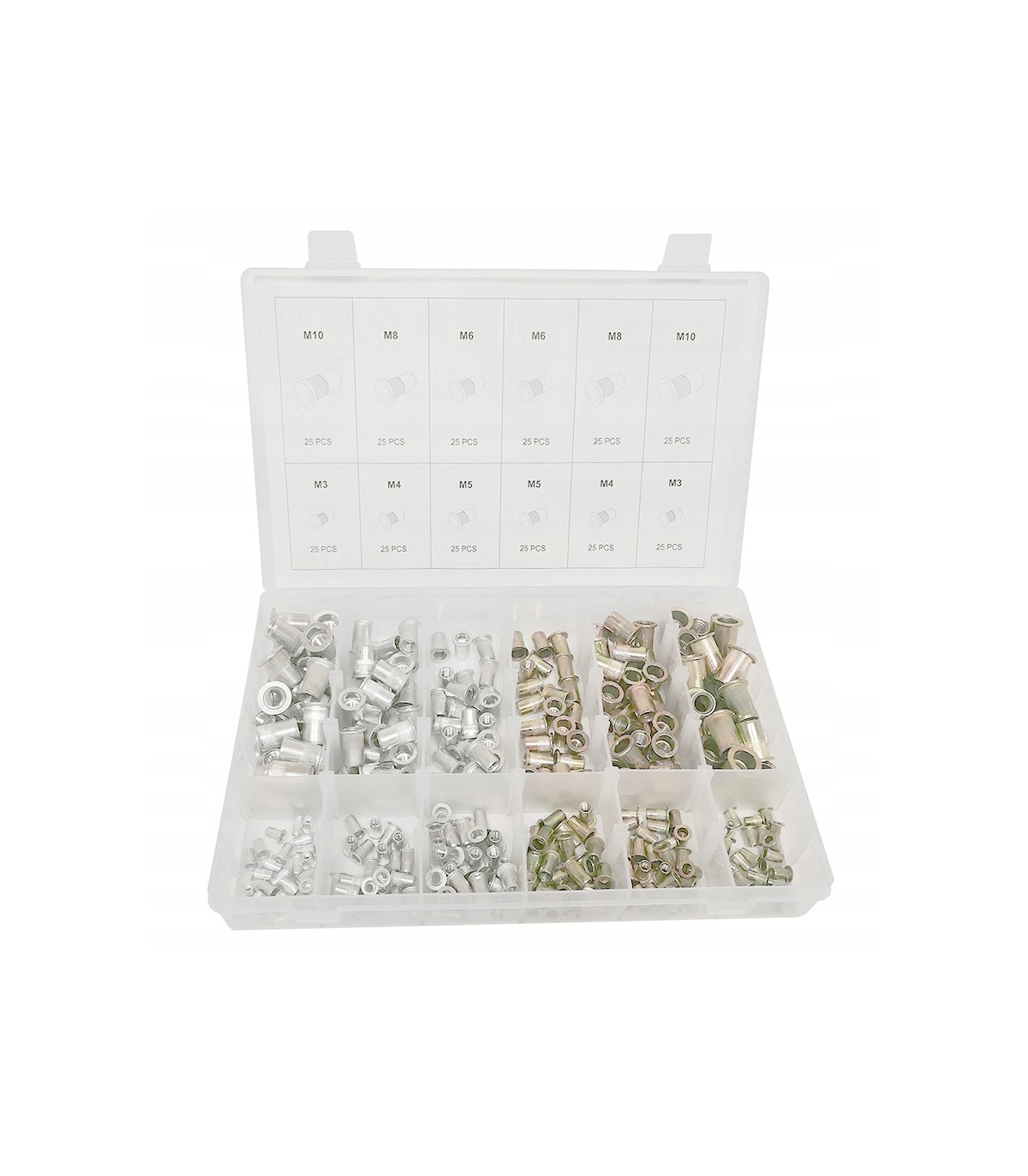 ✨Różnorodność rozmiarów: Zestaw zawiera nitonakrętki w różnych rozmiarach, obejmujące zarówno stalowe, jak i aluminiowe nitonakrętki o rozmiarach od M3 do M10. Każdy rozmiar jest reprezentowany przez 25 sztuk, co zapewnia wystarczającą ilość do wielu zastosowań.