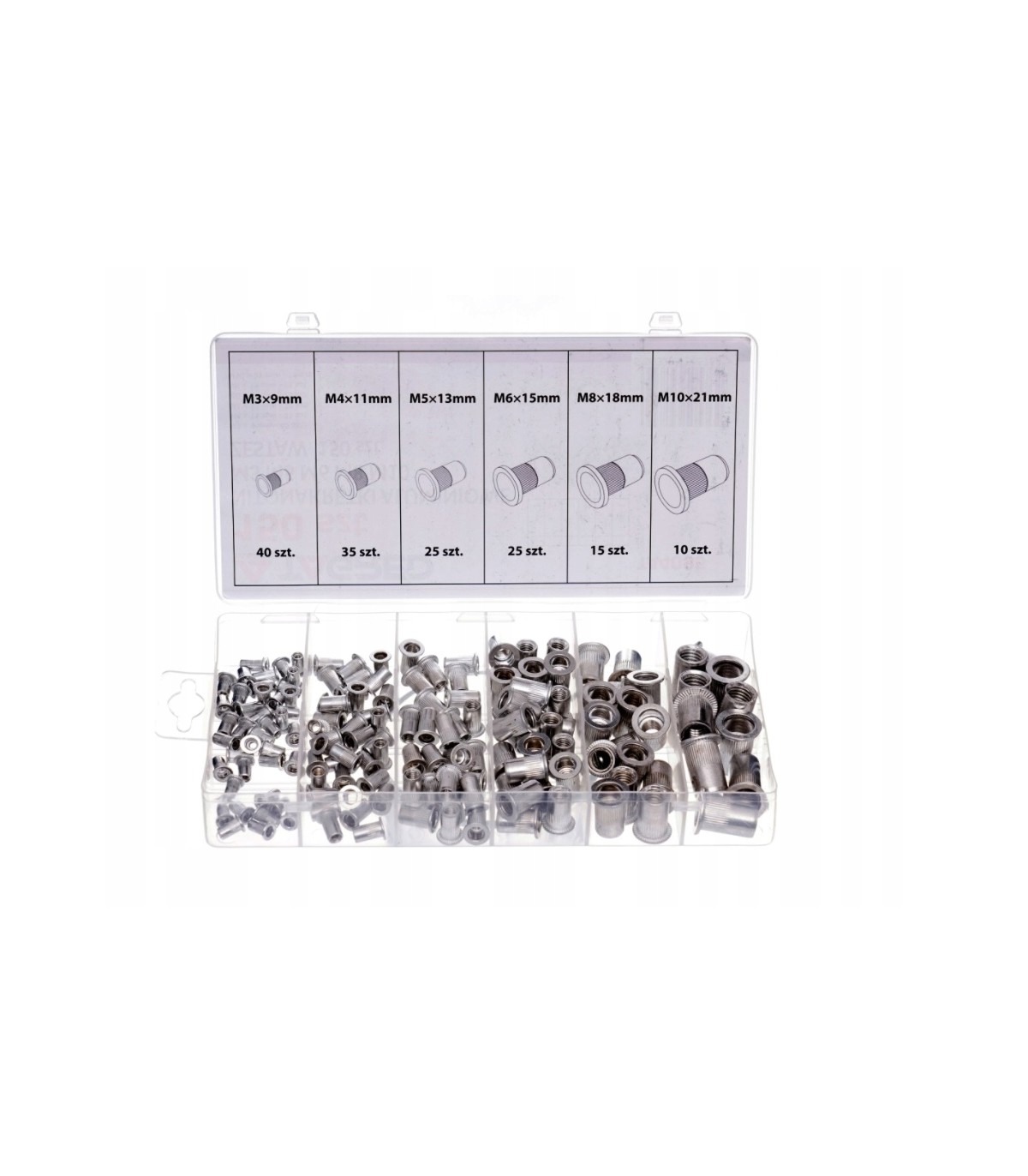 ⭐ Kompletny zestaw 150 aluminiowych nitonakrętek o różnych rozmiarach, idealny do różnorodnych zastosowań montażowych. Nitonakrętki są wykonane z wysokiej jakości aluminium, co zapewnia trwałość i odporność na korozję.
