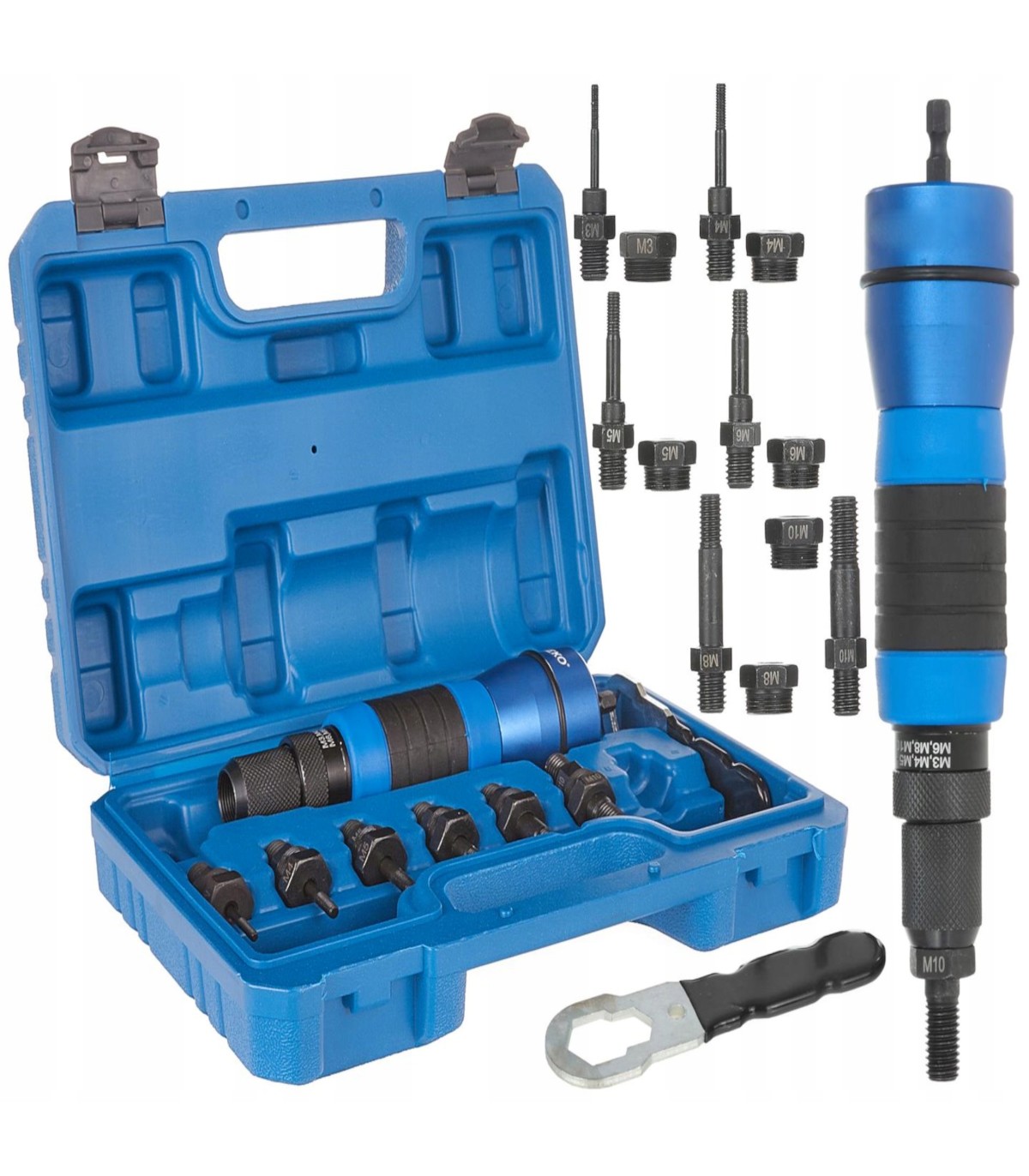 - ✨ Uniwersalność zastosowania – współpracuje z nitonakrętkami M3, M4, M5, M6, M8, M10, dzięki czemu sprawdzi się w wielu projektach montażowych i naprawczych.