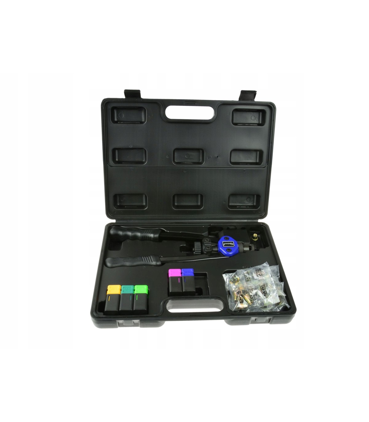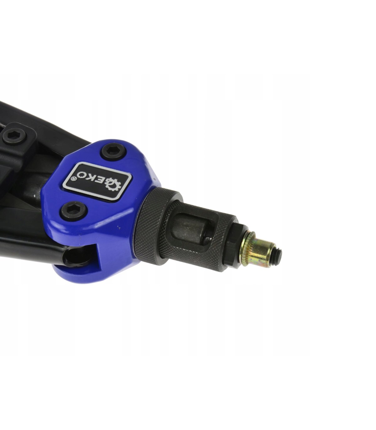Profesjonalna nitownica przeznaczona do wykonywania łączeń różnego rodzaju materiałów za pomocą nitonakrętek. Nitownica wykonana z materiałów najwyższej jakości. Wyposażona w zestaw pięciu głowic w rozmiarach: M5, M6, M8, M10, M12. Stosowanie nitonakrętek umożliwia przykręcenie dodatkowych elementów za pomocą śruby w rozmiarze nitonakrętki.