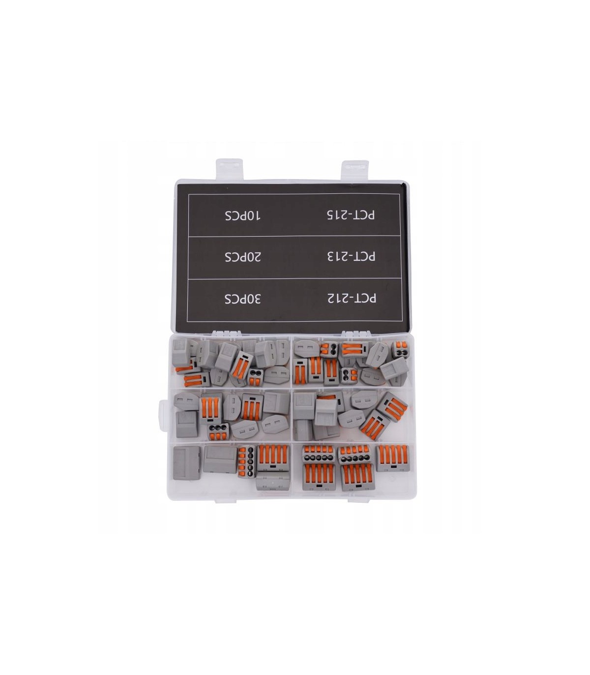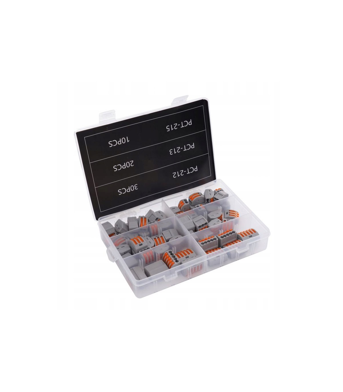 SZYBKOZŁĄCZKI NA DRUT 60 EL ZŁĄCZKI ZESTAW PRAKTYCZNE PRZEZROCZYSTE PUDEŁKO