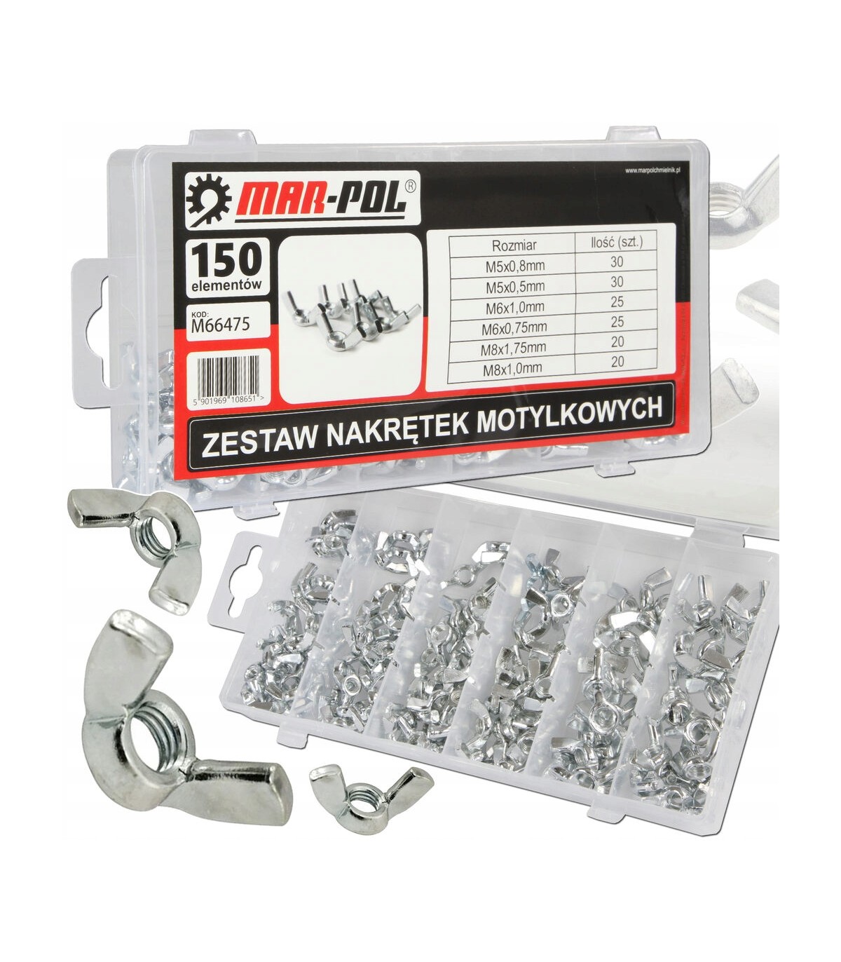 ✅ Zestaw nakrętek motylkowych składający się z 150 elementów