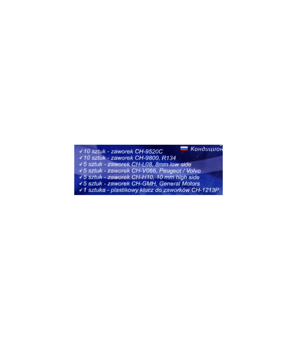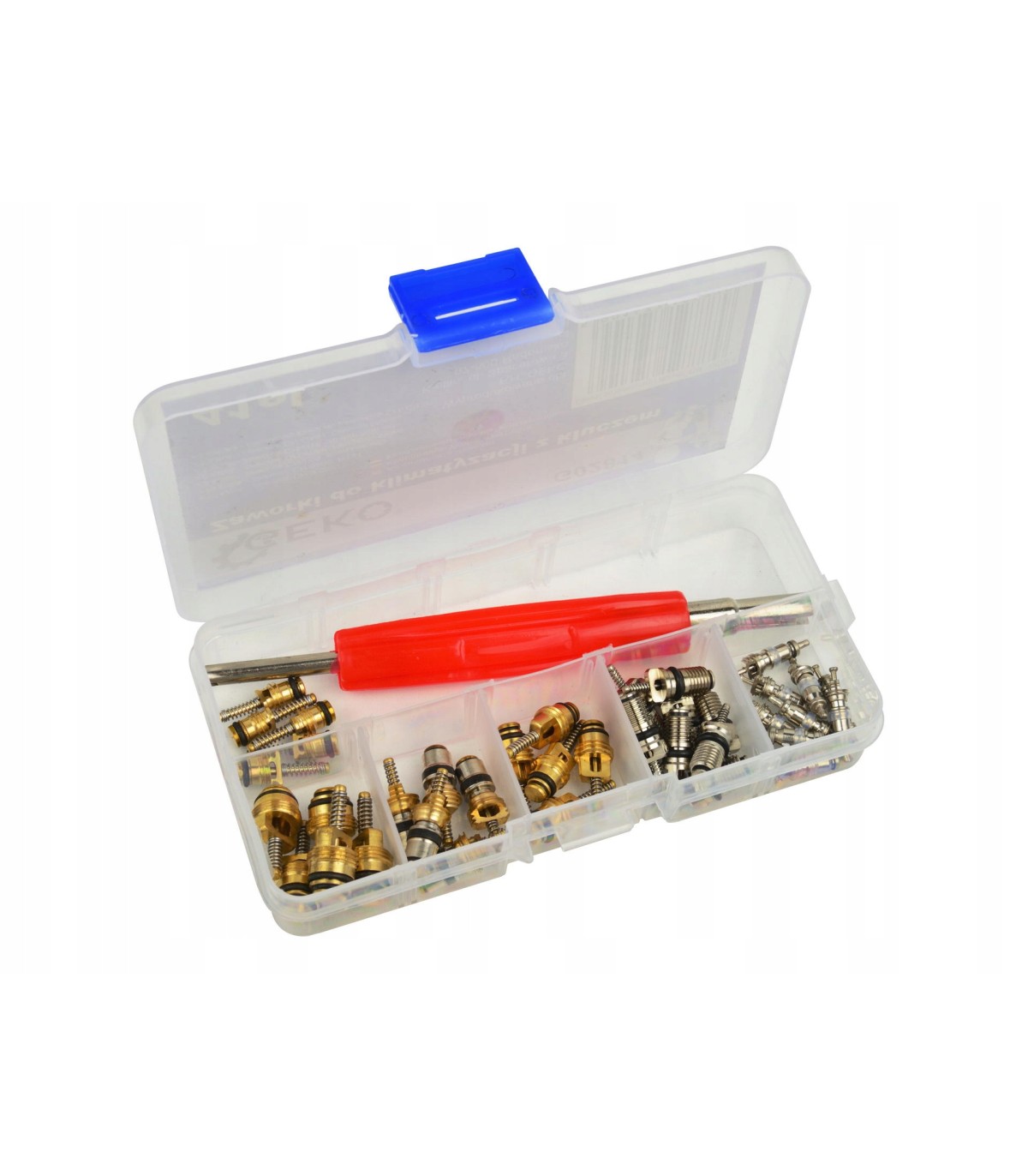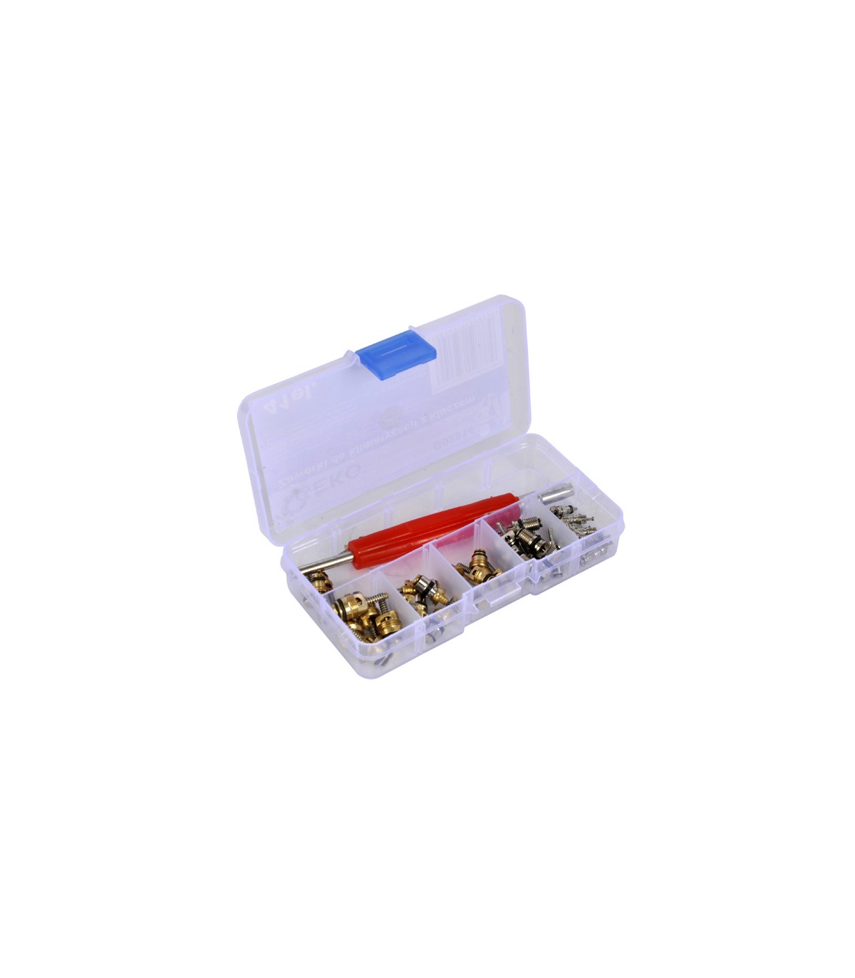 Zawory serwisowe stosowane są przy serwisowaniu i wymianie klimatyzacji samochodowej. Zestaw umieszczono w pojemniku z tworzywa sztucznego z praktyczymi przegródkami.