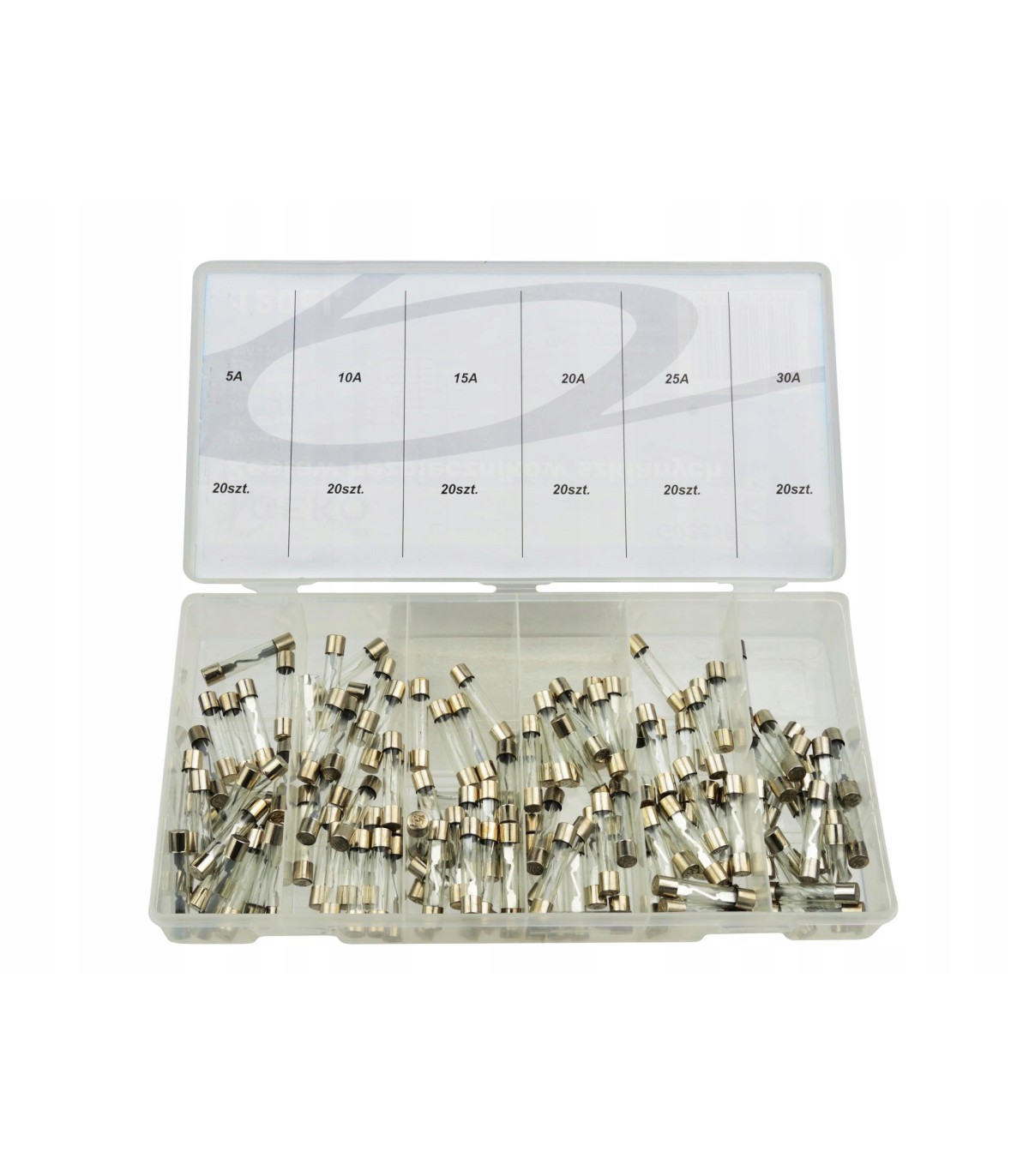 ⭐ Zestaw 120 szklanych bezpieczników o różnych natężeniach prądu, od 5A do 30A. Ten kompletny zestaw zapewni bezpieczeństwo i ochronę Twoich urządzeń elektrycznych w każdych warunkach.