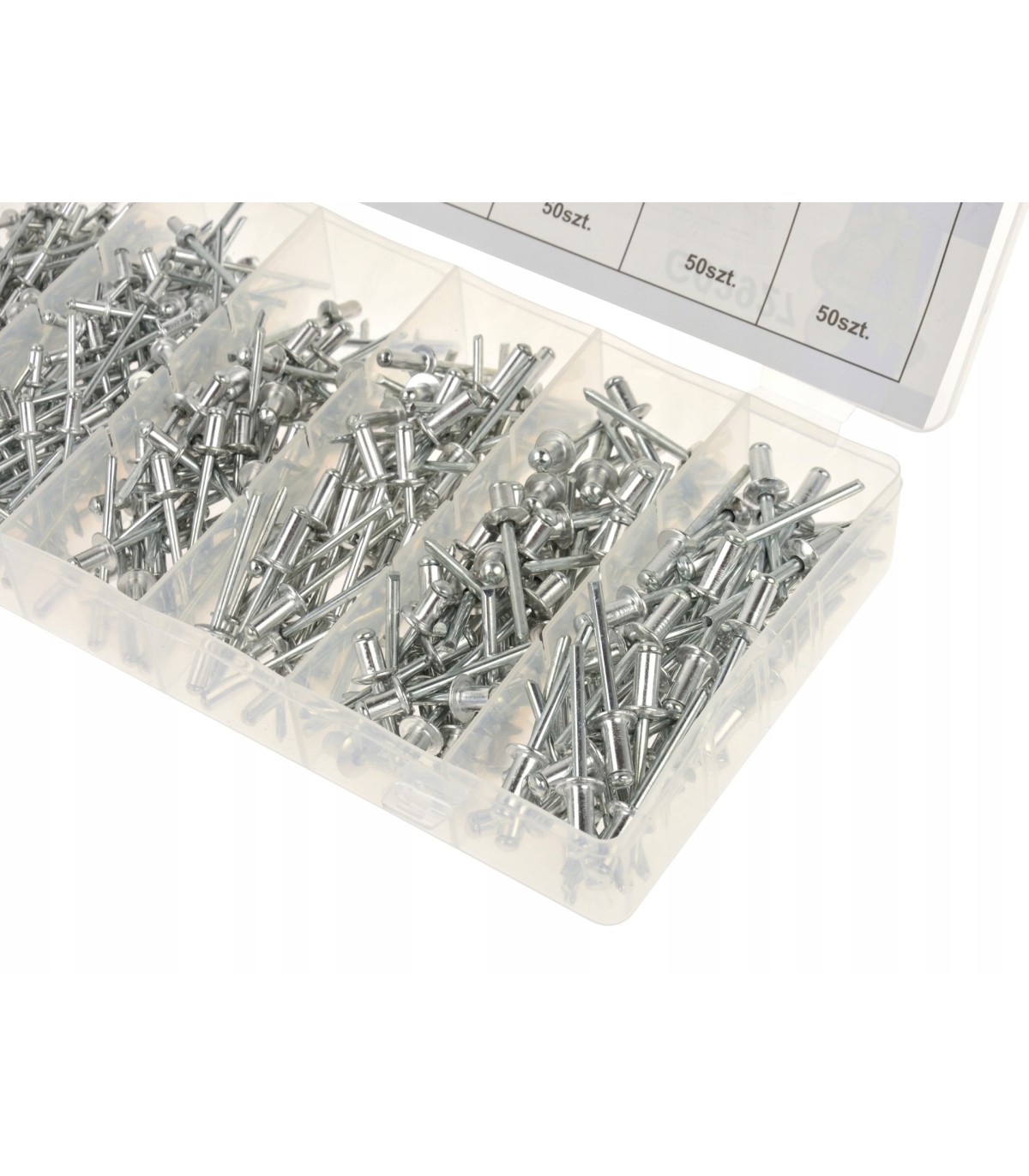 ⭐ Zestaw nitów zrywalnych, który idealnie sprawdzi się w różnych pracach montażowych i naprawczych. Zestaw zawiera 400 sztuk nitów w najpopularniejszych rozmiarach, co zapewnia wszechstronność i elastyczność w użytkowaniu.