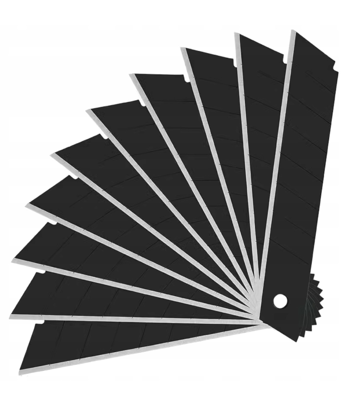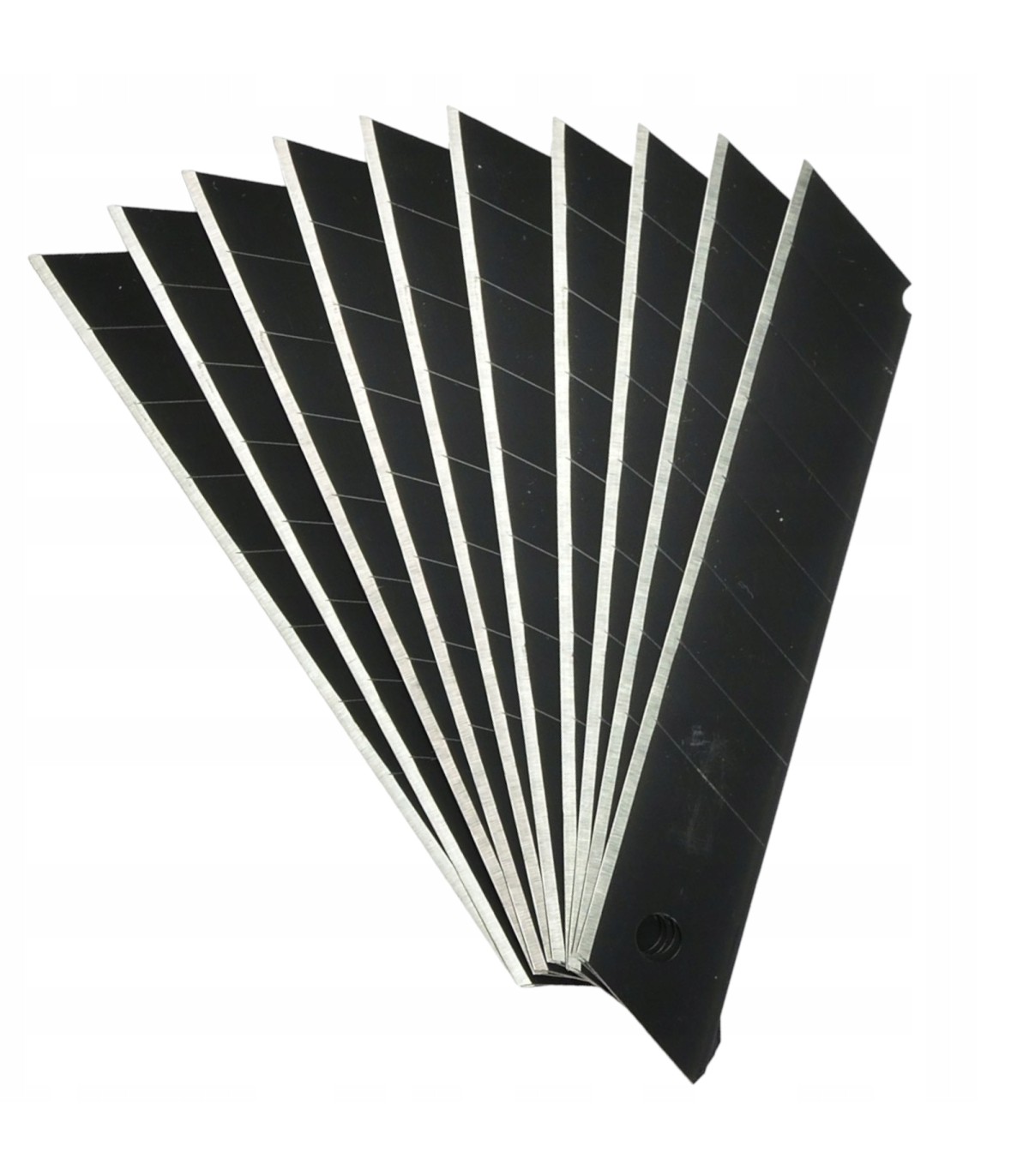 2️⃣ Czarna powłoka antykorozyjna - ochrona przed korozją. 3️⃣ Nacięcia ułatwiające łamanie - proste i szybkie odświeżanie ostrza. 4️⃣ Uniwersalne - pasują do większości noży z wymiennymi ostrzami. 5️⃣ 10 ostrzy w zestawie - długotrwałe i ekonomiczne rozwiązanie.