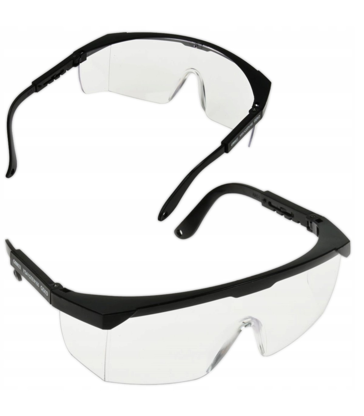 OKULARY OCHRONNE PRZECIWODPRYSKOWE CZARNE REGULOWANE EN166 ANSI BEZBARWNE