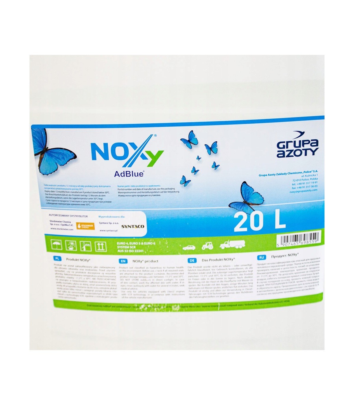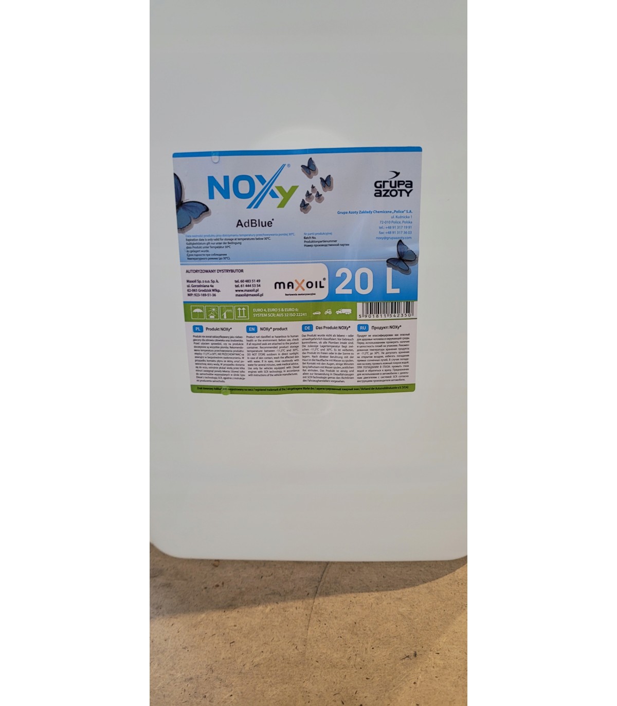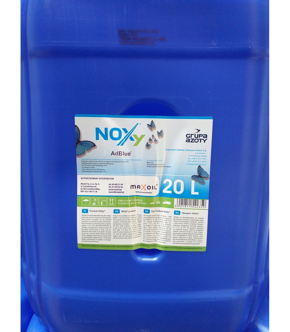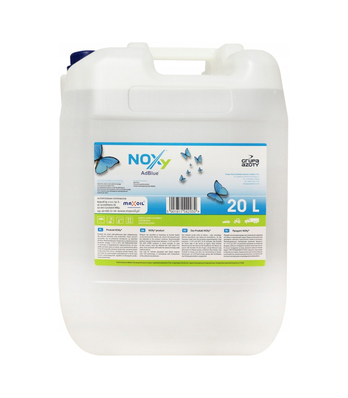 Ad Blue NOXY jest 32,5% wodnym roztworem mocznika o barwie przeźroczystej lub lekko żółtej. Jest nietoksyczny, niepalny, bezpieczny dla otoczenia i przyjazny dla środowiska. Ad Blue stosowany jest w technologii oczyszczania spalin w silnikach Diesla wykorzystujących technologię SCR (selektywnej redukcji katalitycznej).