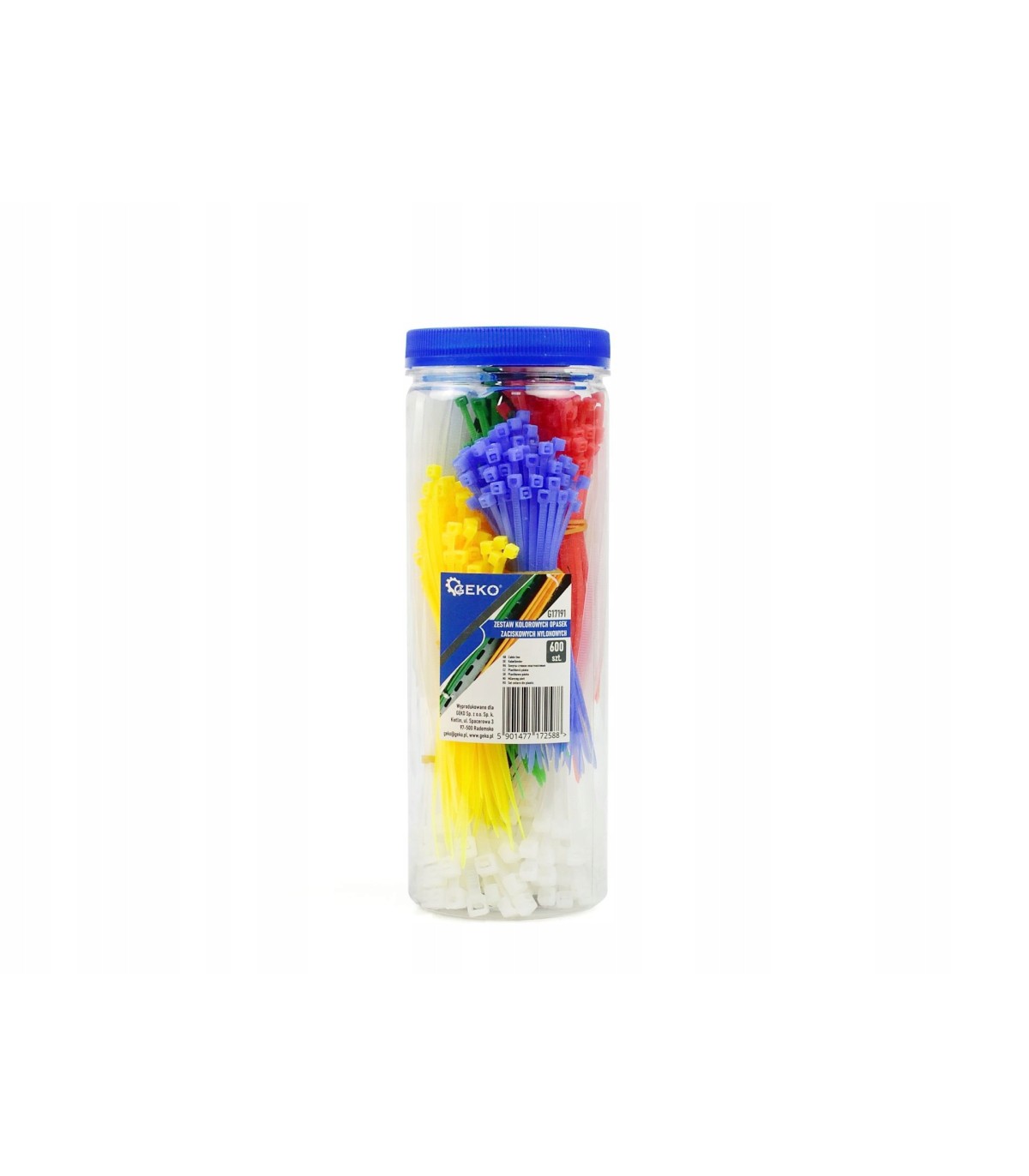 ✅ Opaski zaciskowe kokorowe zestaw 600szt. w tubie Geko to zestaw kolorowych opasek zaciskowych wykonanych z wysokiej jakości poliamidu o dużej odporności na zrywanie oraz dużej wytrzymałości termicznej.