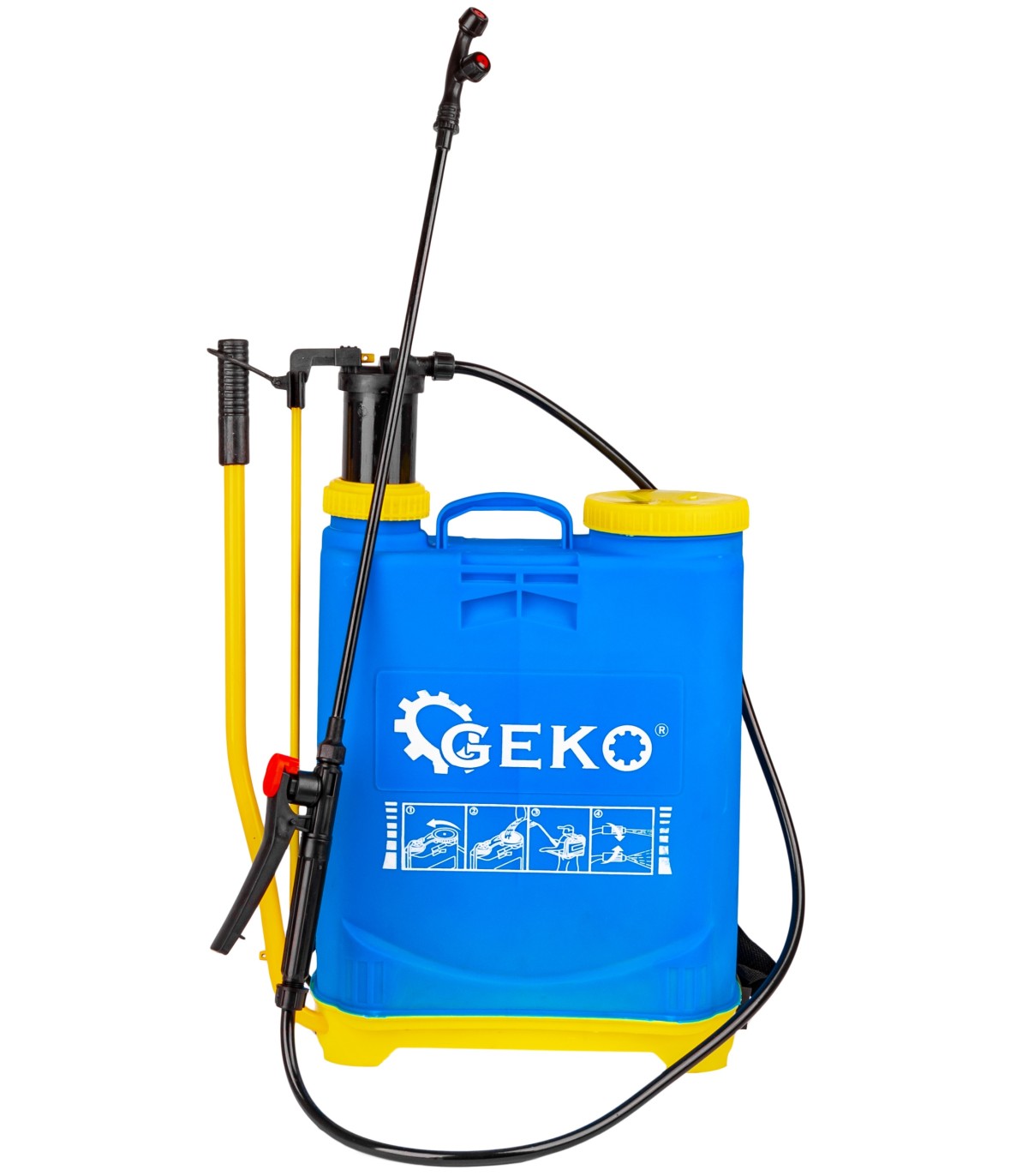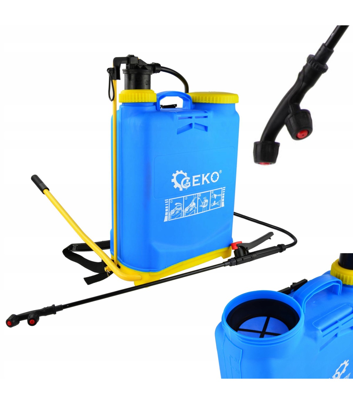 Opryskiwacz ten wyposażony jest w funkcje, dzięki którym konieczne czynności stają się przyjemnością, a ponadto zapewniają sprawne i ekonomiczne dozowanie wody, środków owadobójczych, pestycydów oraz nawozów sztucznych.