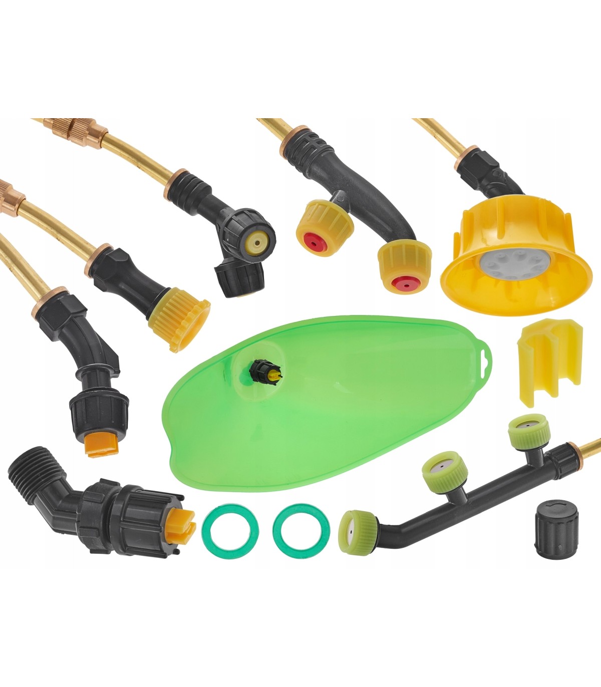 Opryskiwacz jest wyposażony w 7 różnych dysz do różnych zastosowań, co umożliwia szerokie spektrum działań w ogrodzie, sadzie czy polu. Ich łatwa wymienialność sprawia, że użytkownik może szybko dostosować opryskiwacz do konkretnych potrzeb. Niebywałym atutem naszego opryskiwacza jest dodatkowa szeroka lanca z zespołem 6 dysz rozmiszczonych na szerokości aż 166 cm.