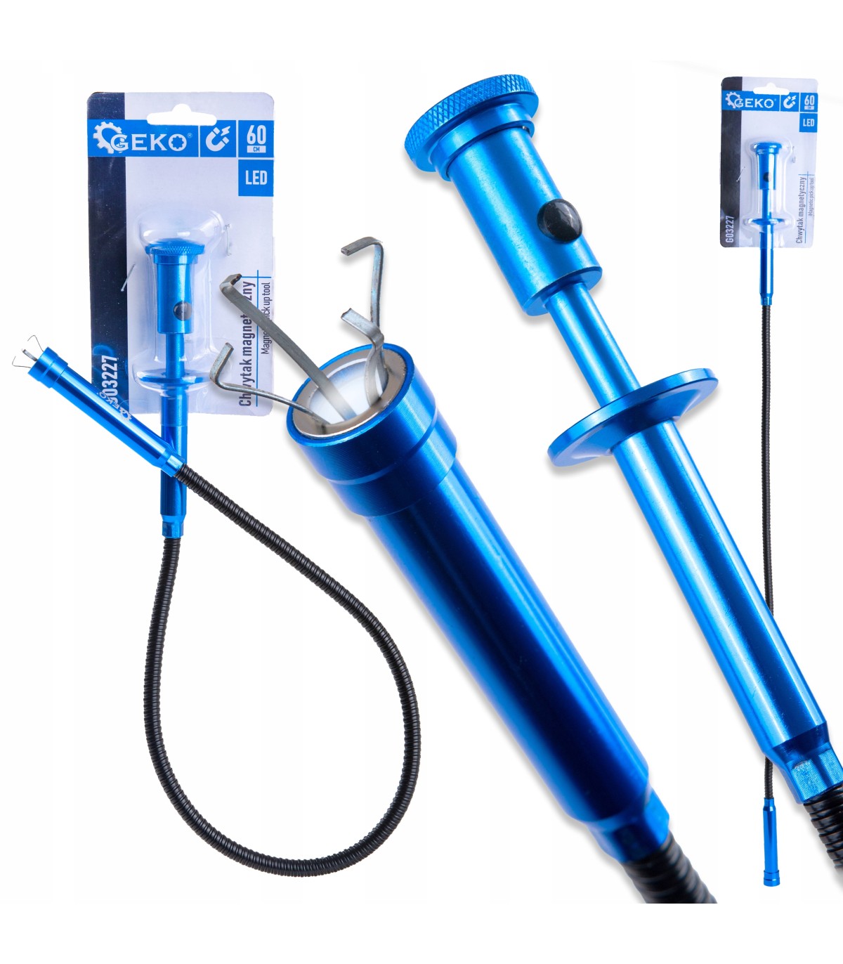 Solidny chwytak z magnesem światłem LED i mechanizmem pazurkowym 60 cm