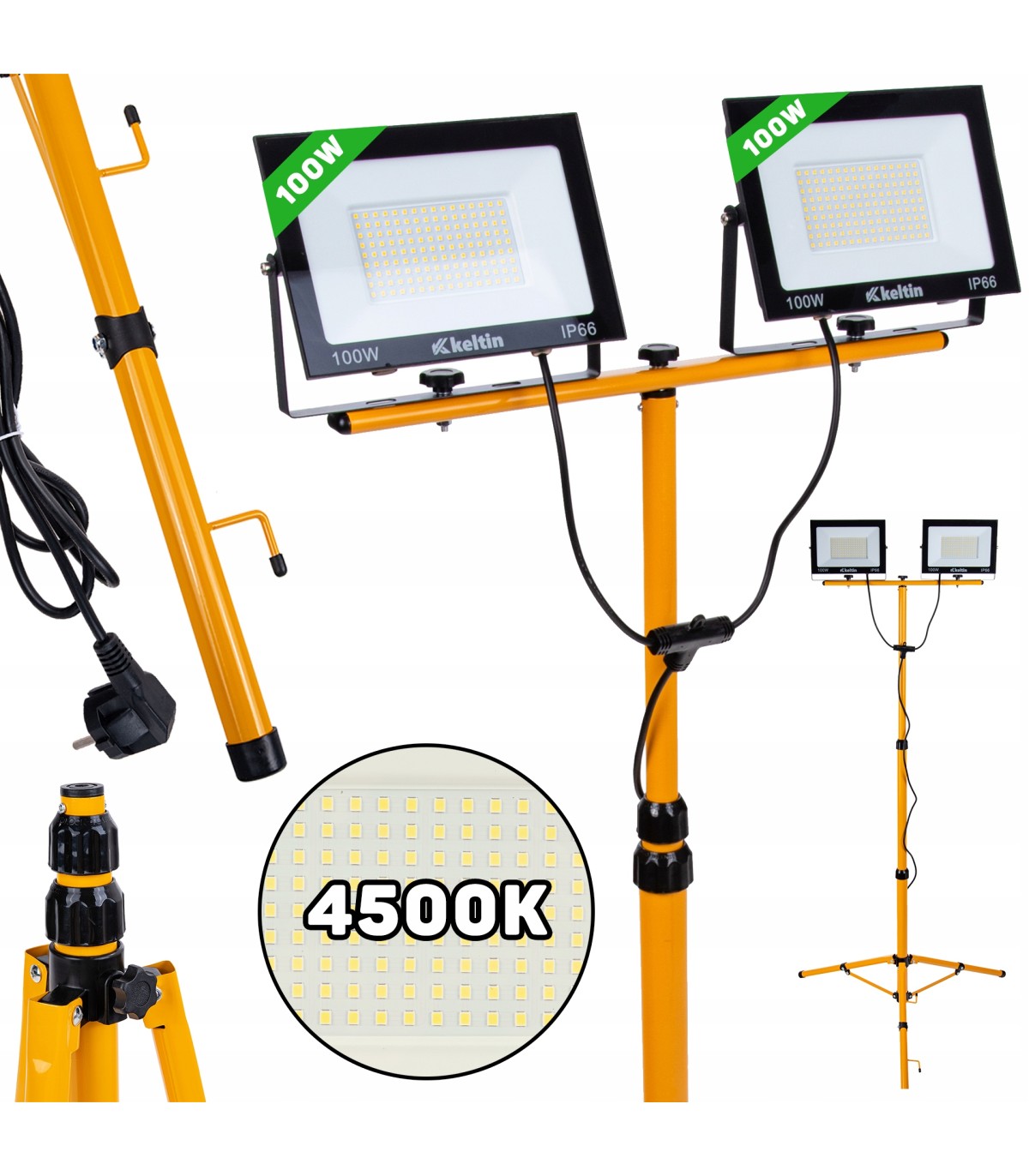 ⭐ Naświetlacze LED 2x100W ze statywem budowlanym teleskopowym
