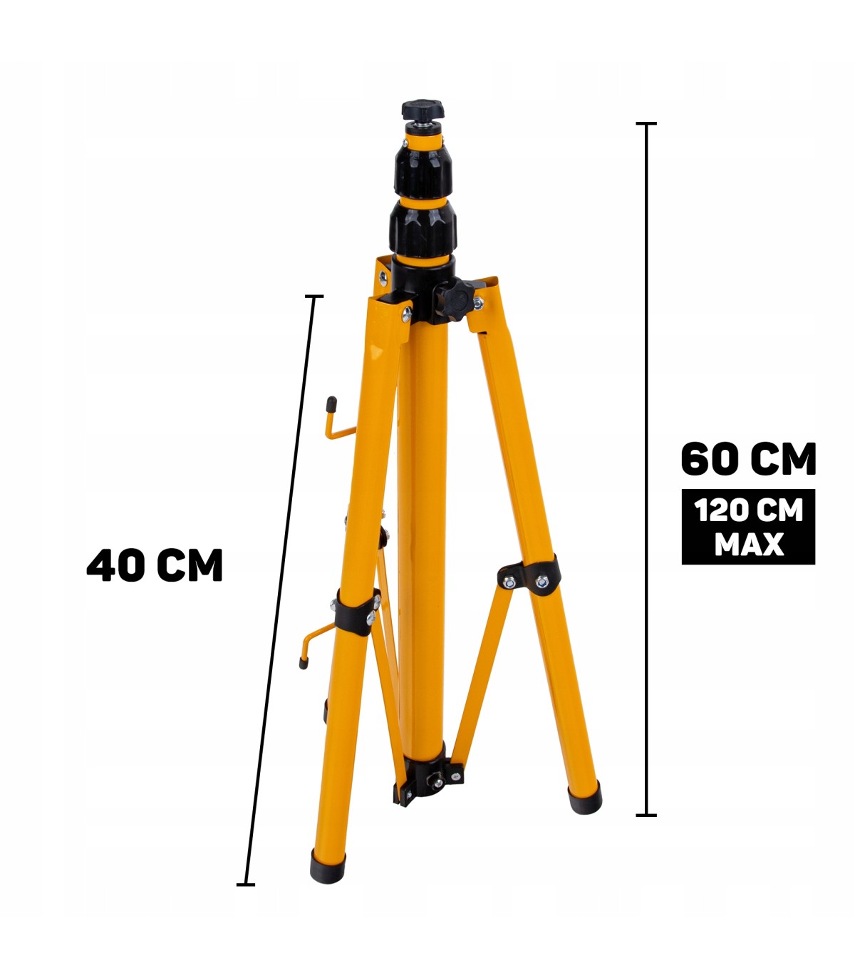Statyw oferuje regulację wysokości od 60 cm do maksymalnie 160 cm, co umożliwia dostosowanie do praktycznie każdego zadania.