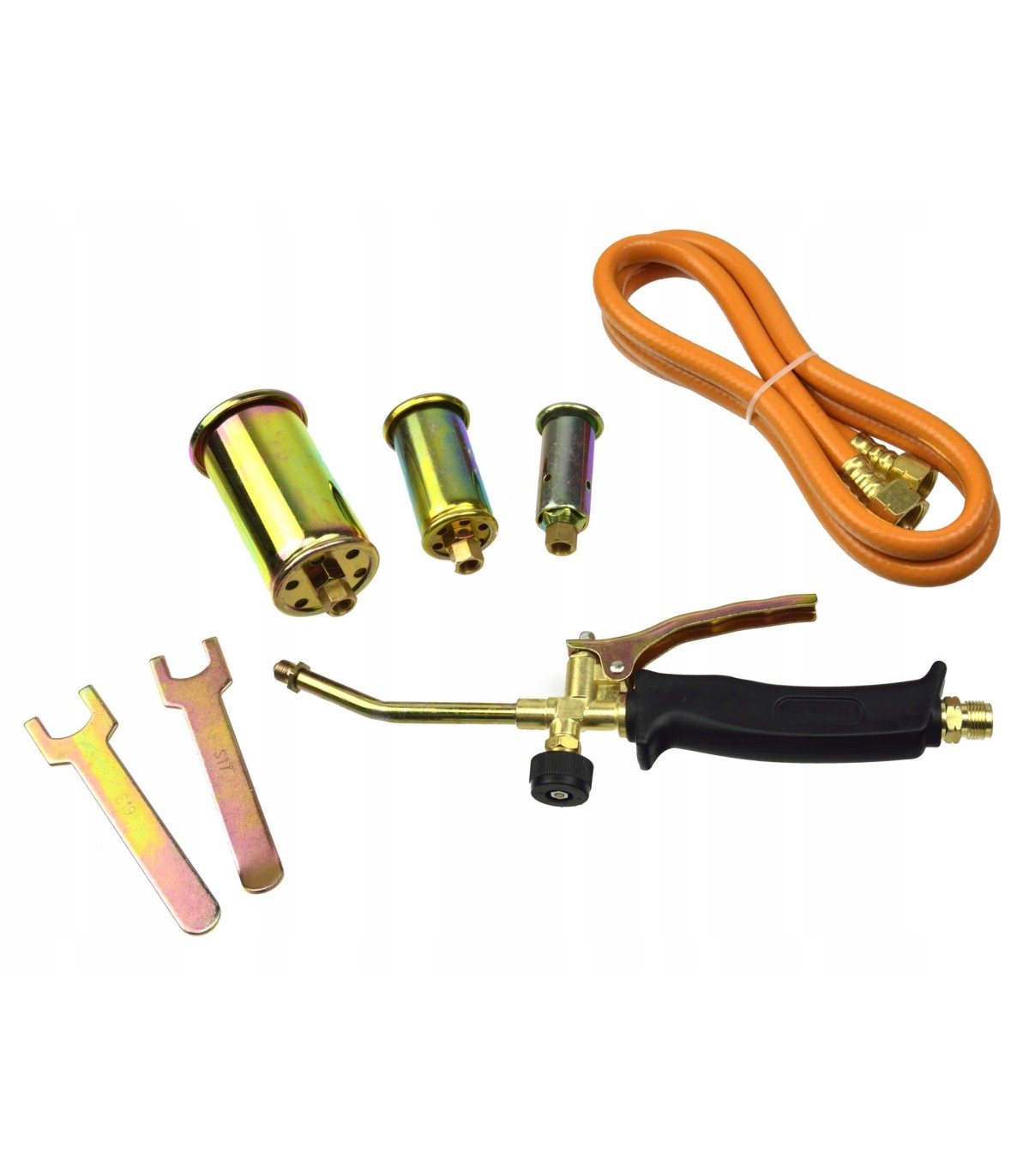 Profesjonalny palnik gazowy do podgrzewania i wypalania w zestawie z 3 dyszami.