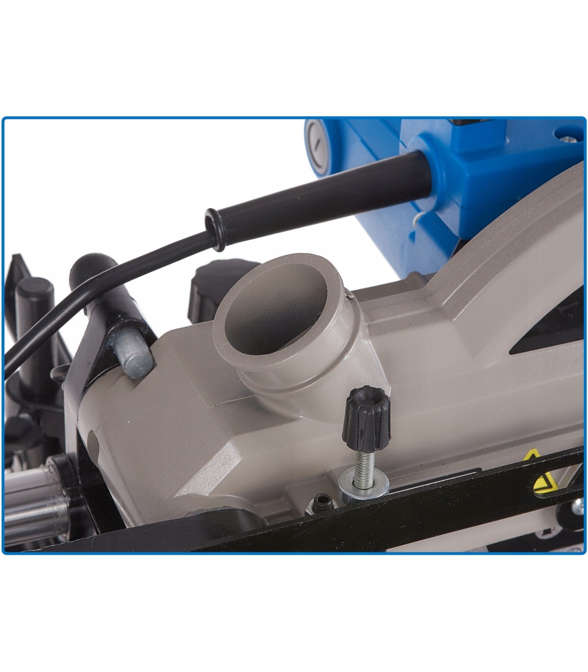 Dodatkowym atutem przecinarki jest rozsuwany stolik roboczy pozwalający pracować z materiałami o różnej wielkości. Ukośnica posiada zacisk umożliwiający pewne przytrzymywanie ciętego materiału.