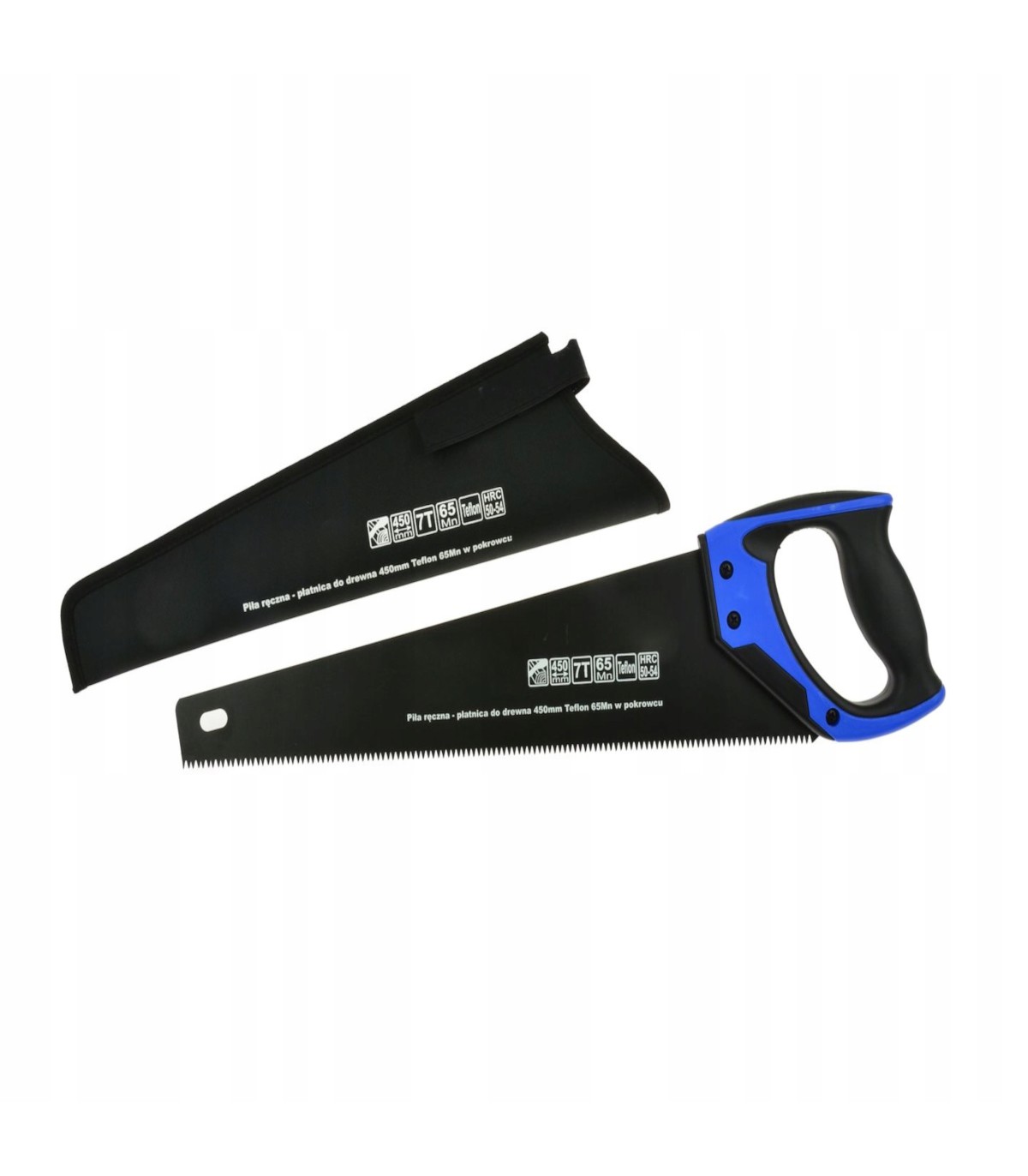 PIŁA RĘCZNA PŁATNICA DO DREWNA 450mm 65Mn PTFE W POKROWCU CZARNA TEFLON