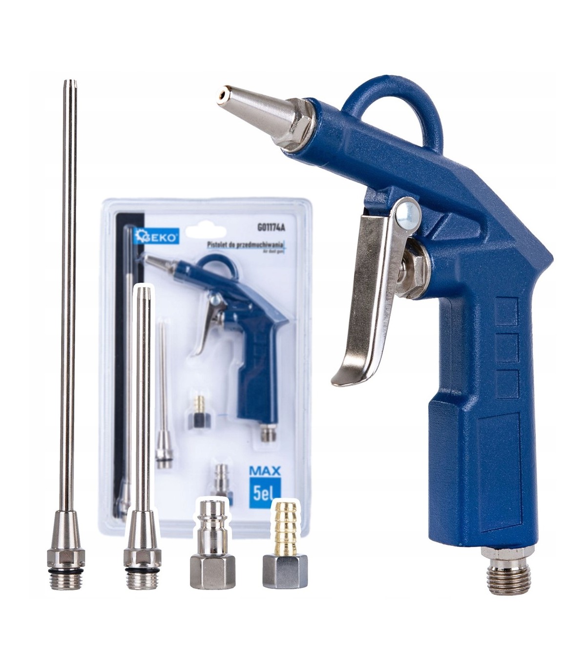 Pistolet MAX do przedmuchiwania z końcówkami to narzędzie, które dostosujesz do każdego zadania. Niezależnie od tego, czy pracujesz przy maszynach, czyścisz zakamarki pojazdów, czy usuwasz pył i zanieczyszczenia z powierzchni – ten zestaw zapewni Ci dokładność i efektywność.