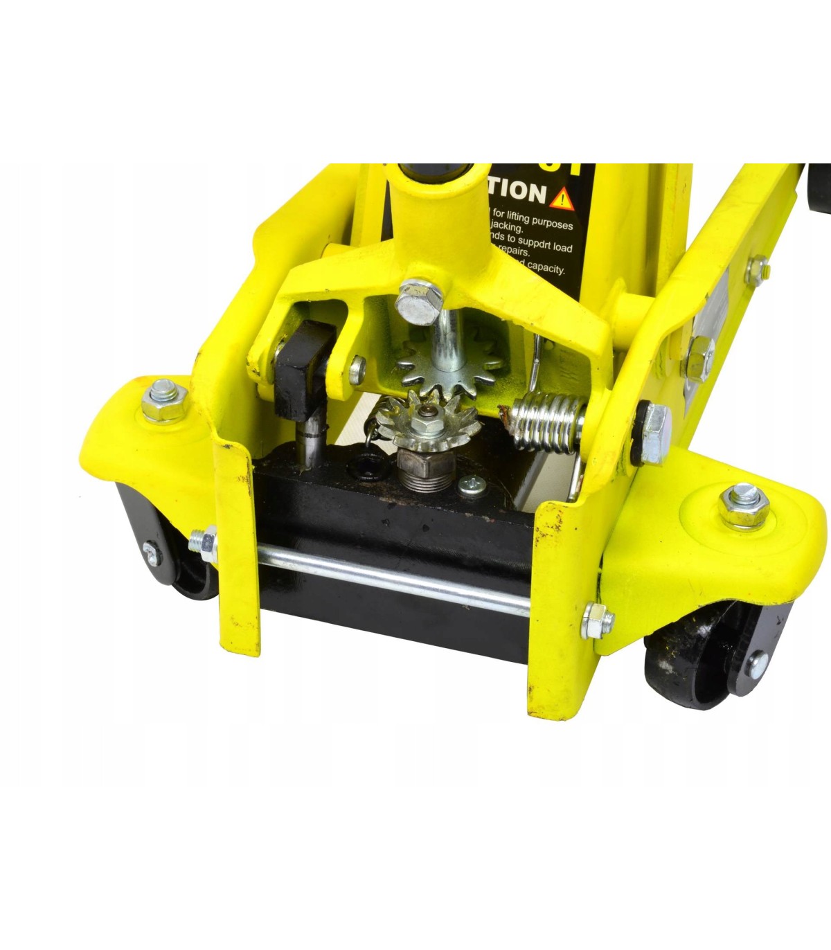 Podnośnik wyposażony jest w szerokie stalowe koła osi przedniej oraz łożyskowane obrotowe 360° osi tylnej.